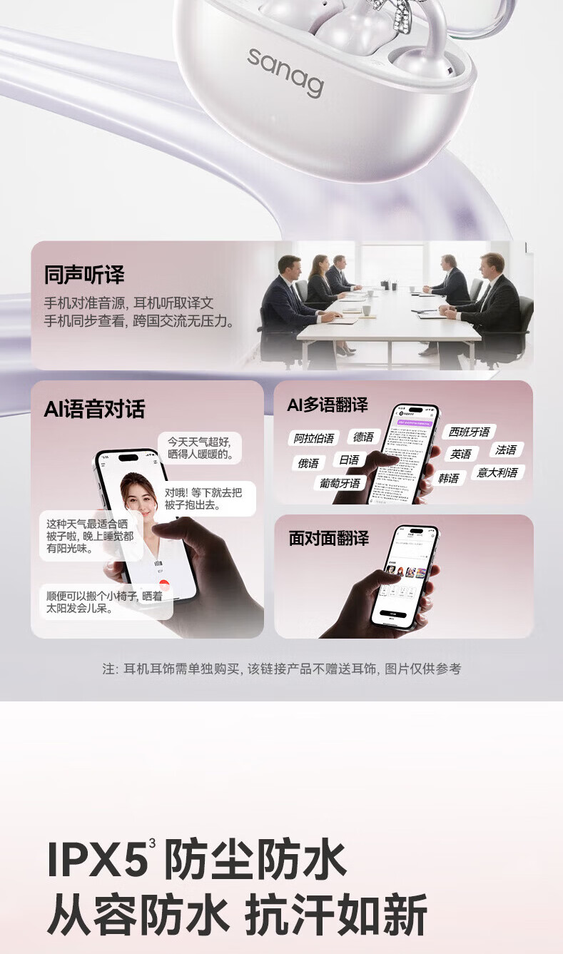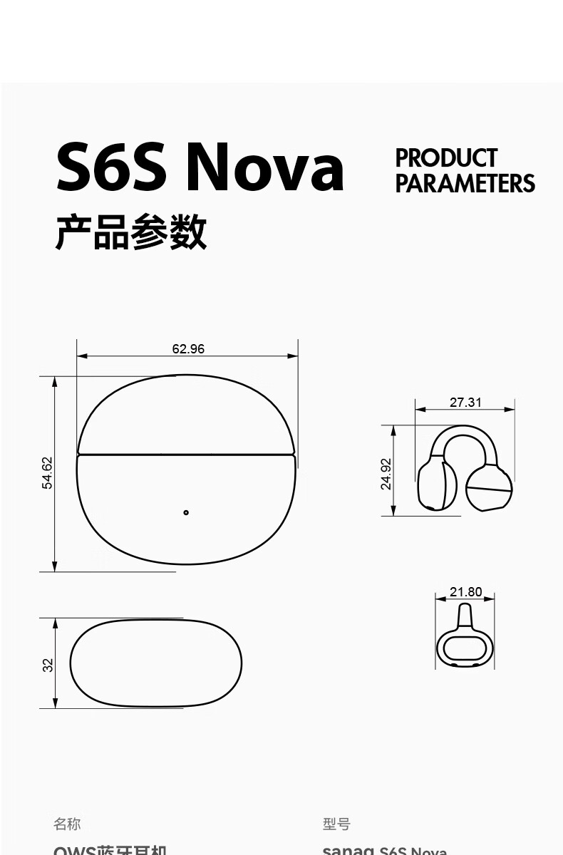 sanag塞那 耳夹式蓝牙耳机耳饰S6S Nova
