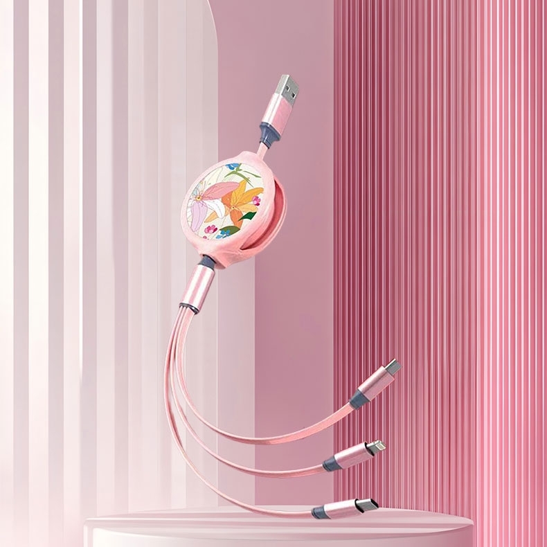 爱尔沃 粉色一拖三拉伸数据线快充插头套装