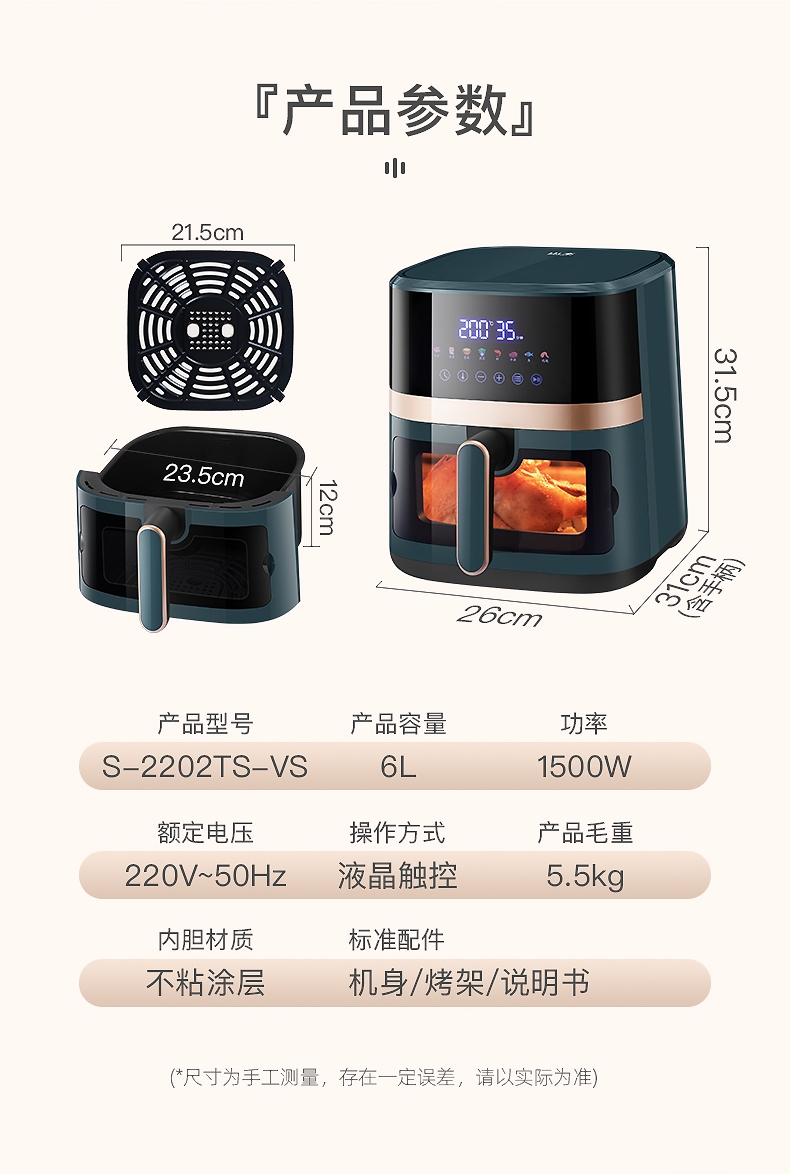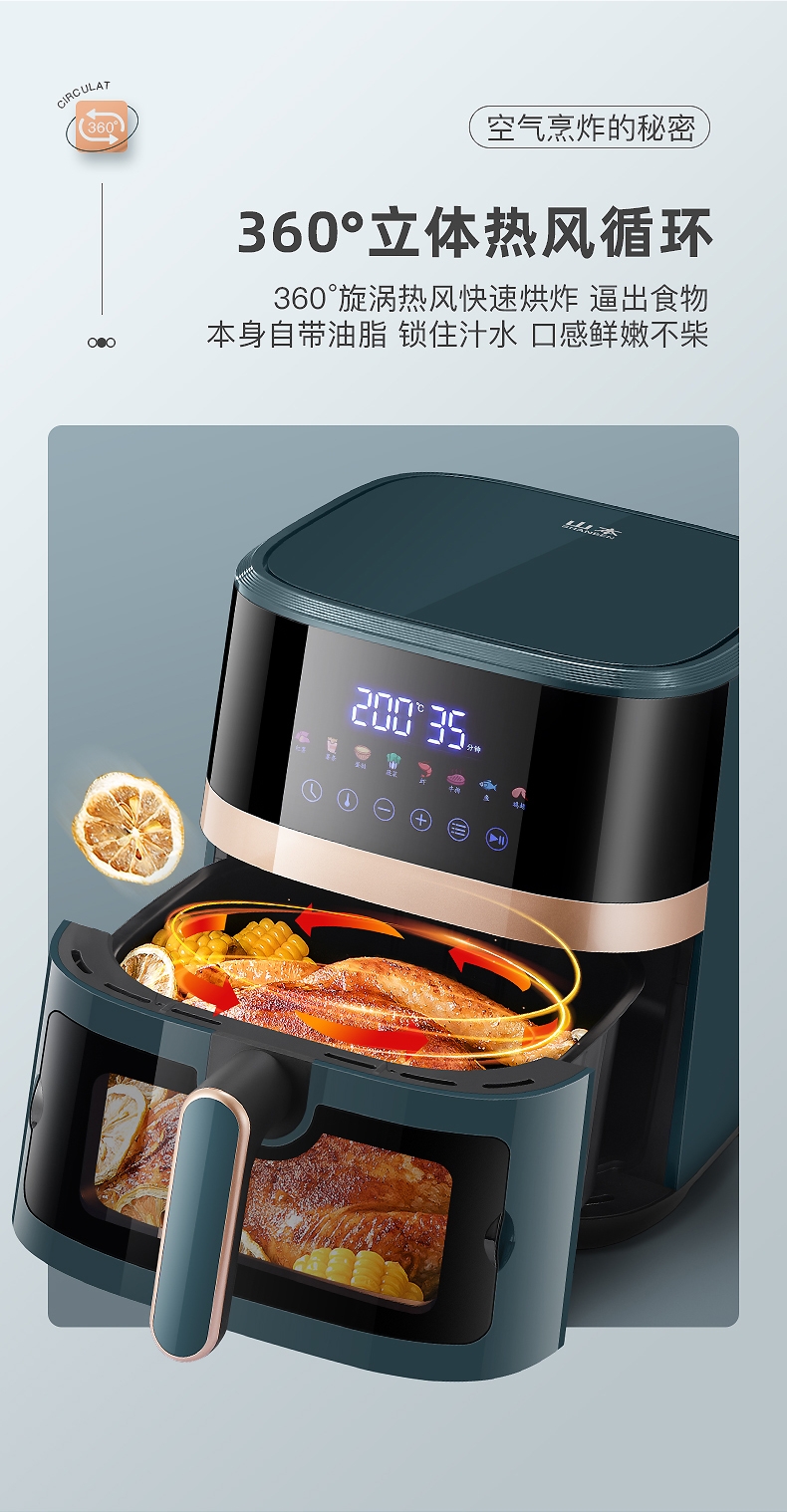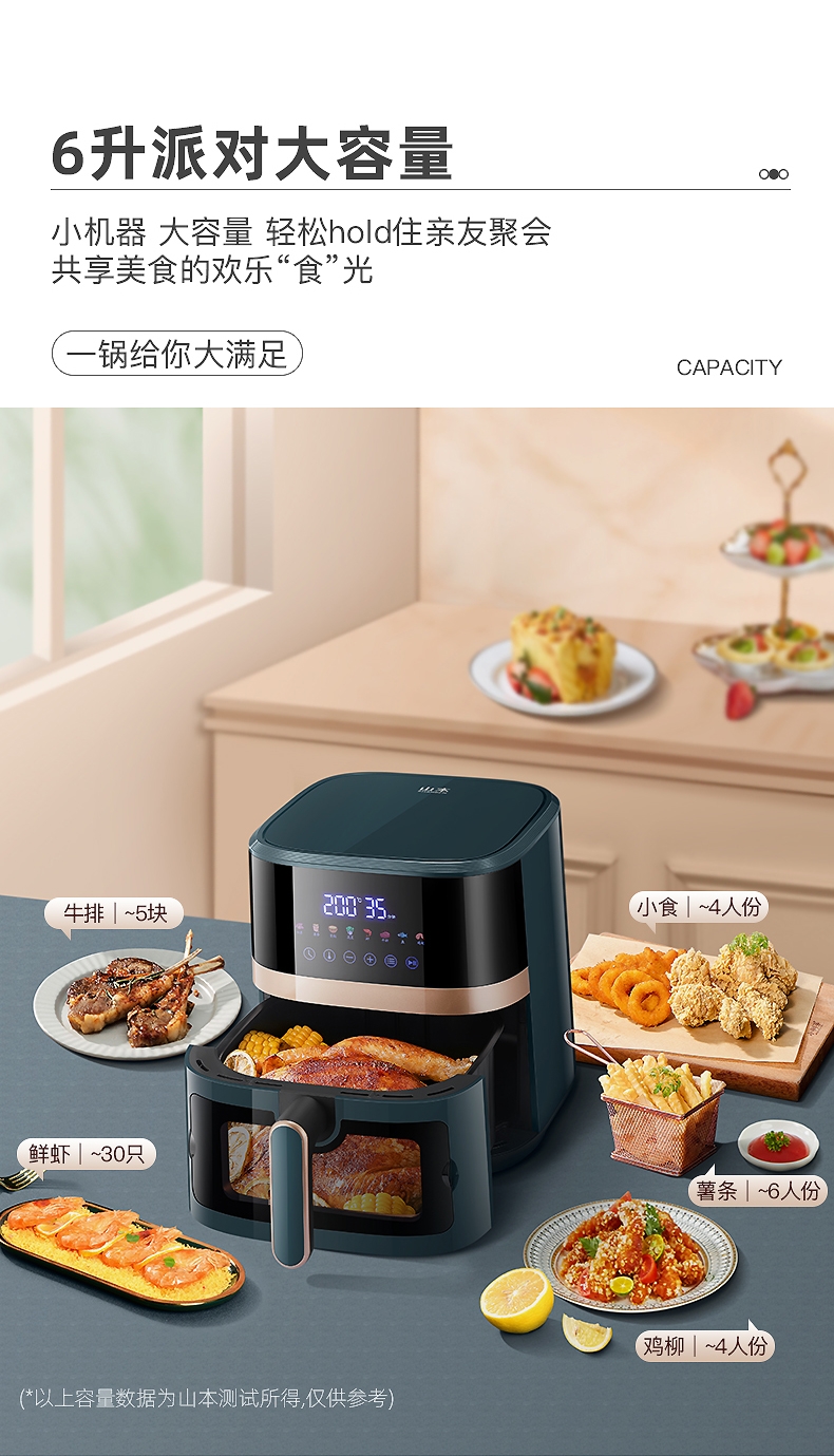6升大容量;可视炸蓝;智能操作方便简捷