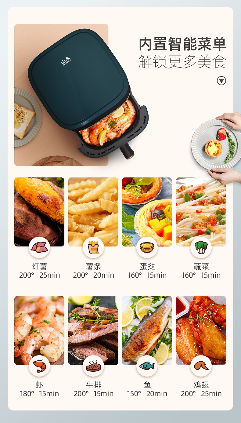 山本 6升可视空气炸锅S-2202TS-VS