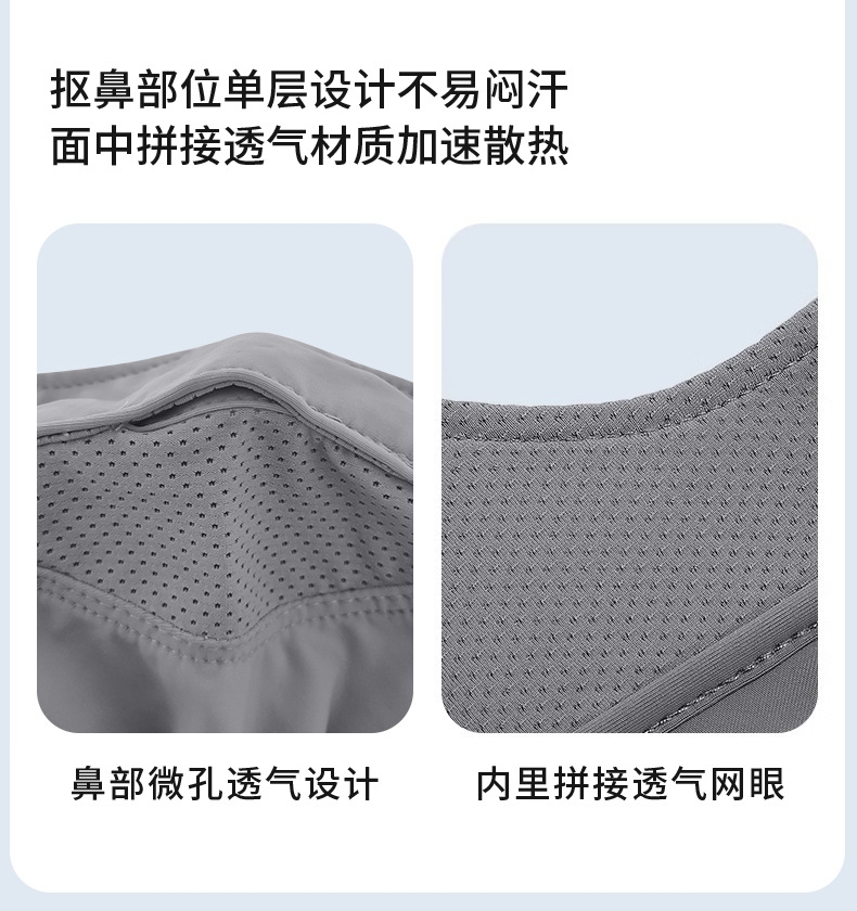 5D立体修容 修饰脸型 阻隔紫外线UPF50+;凉感透气,肤感冰爽 柔软透气;挂耳设计 吸湿速干