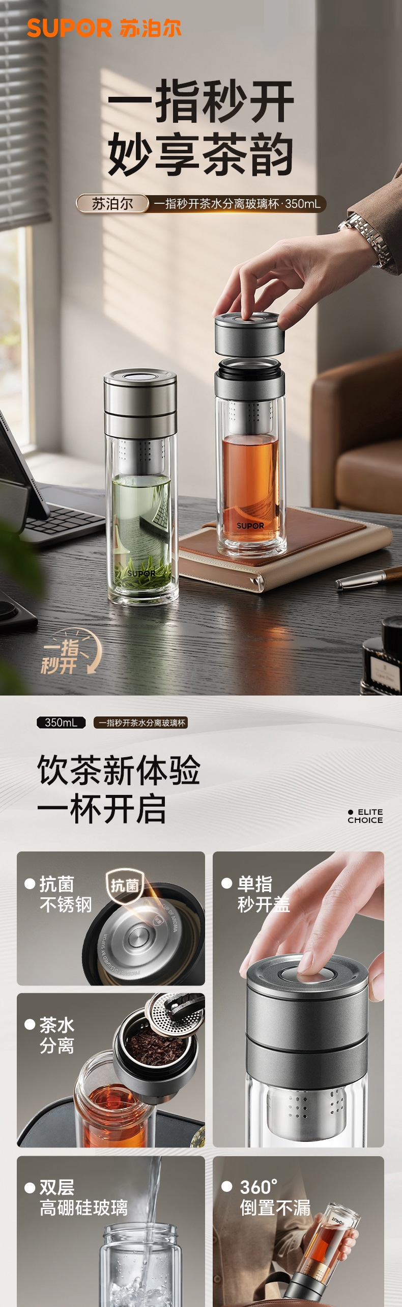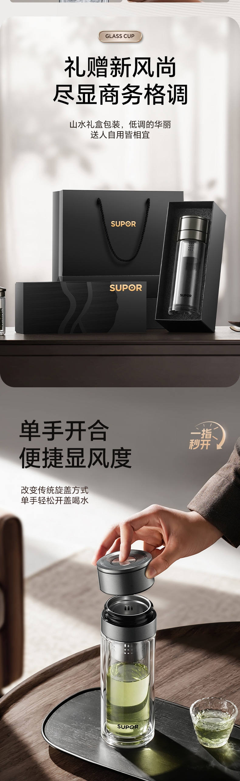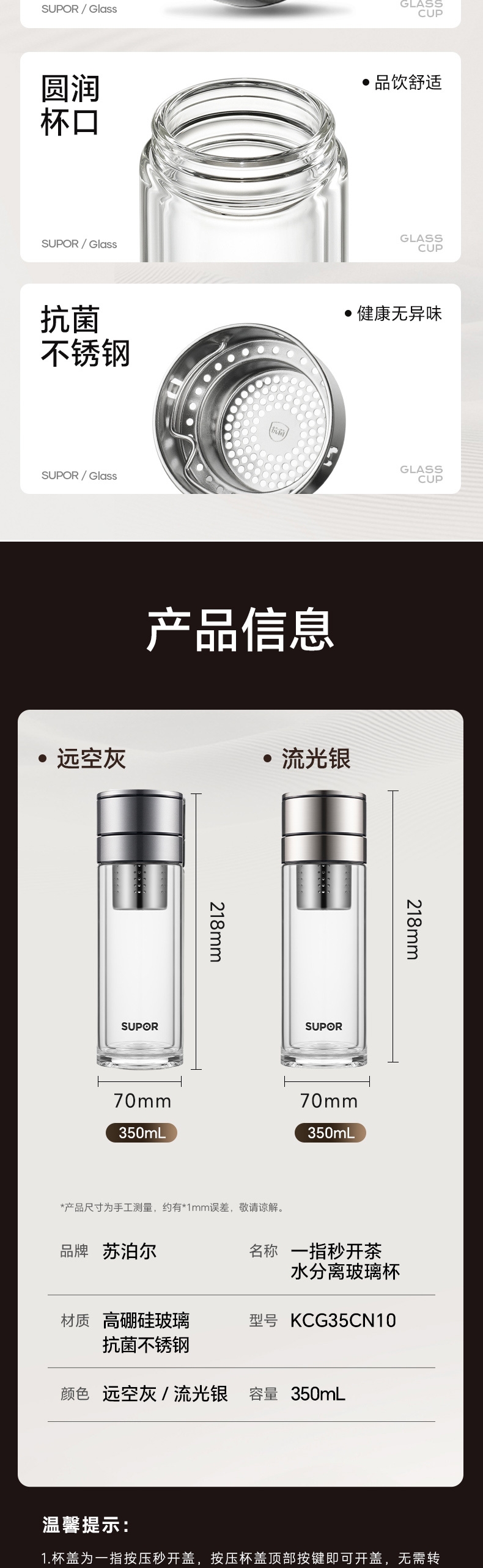 苏泊尔 一指秒开茶水分离玻璃杯KCG35CN10