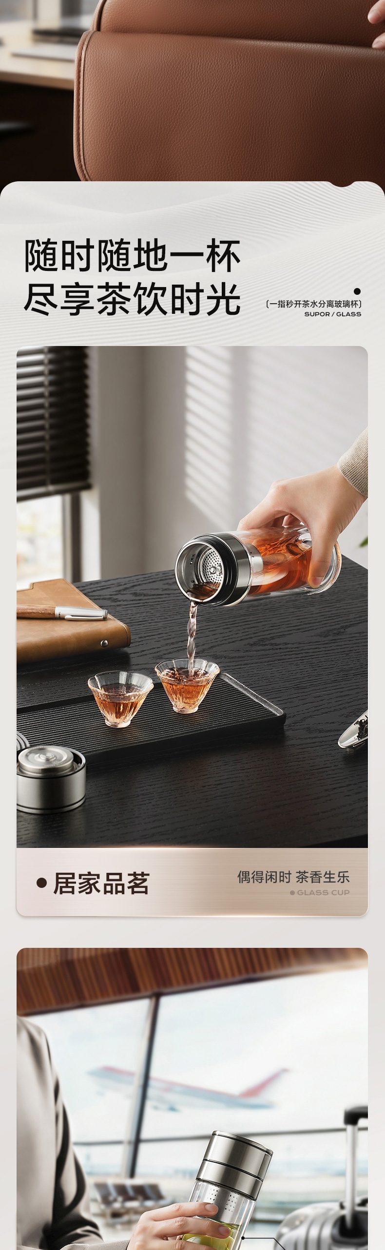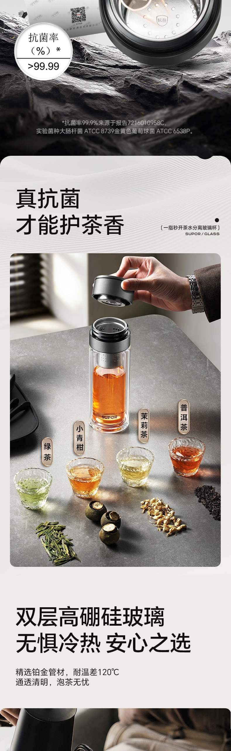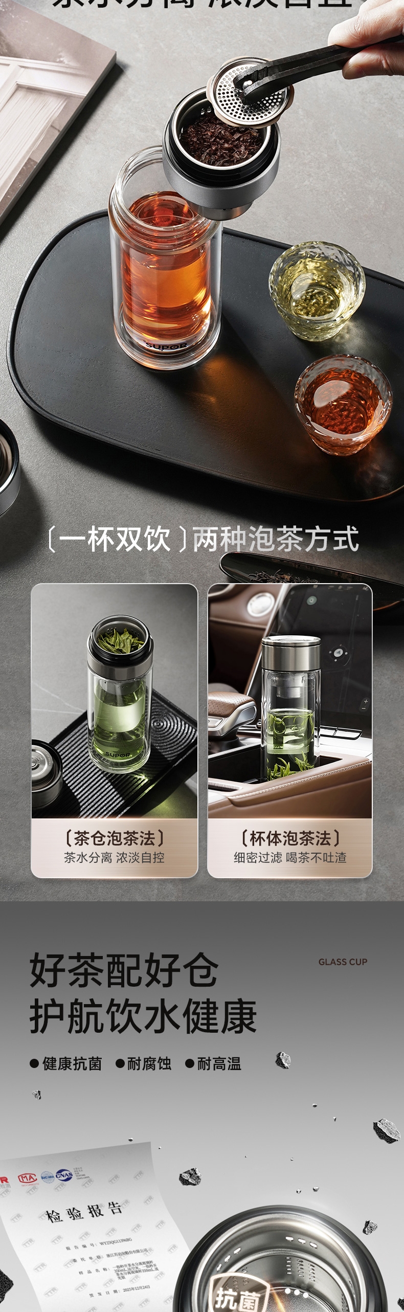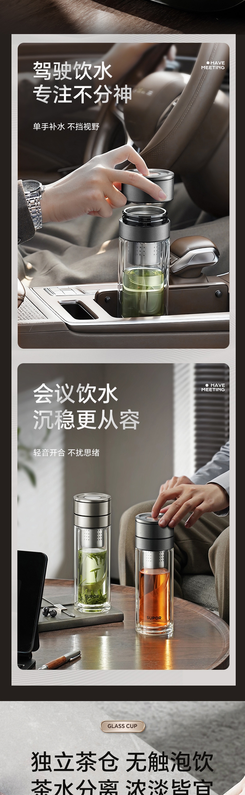 苏泊尔 一指秒开茶水分离玻璃杯KCG35CN10