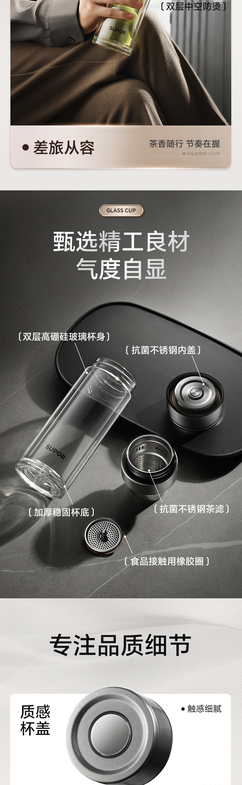 一指秒开无需手拧&单手操作&开合快捷;全钢质感杯盖抗菌*不锈钢;加厚防爆杯体外层加厚底