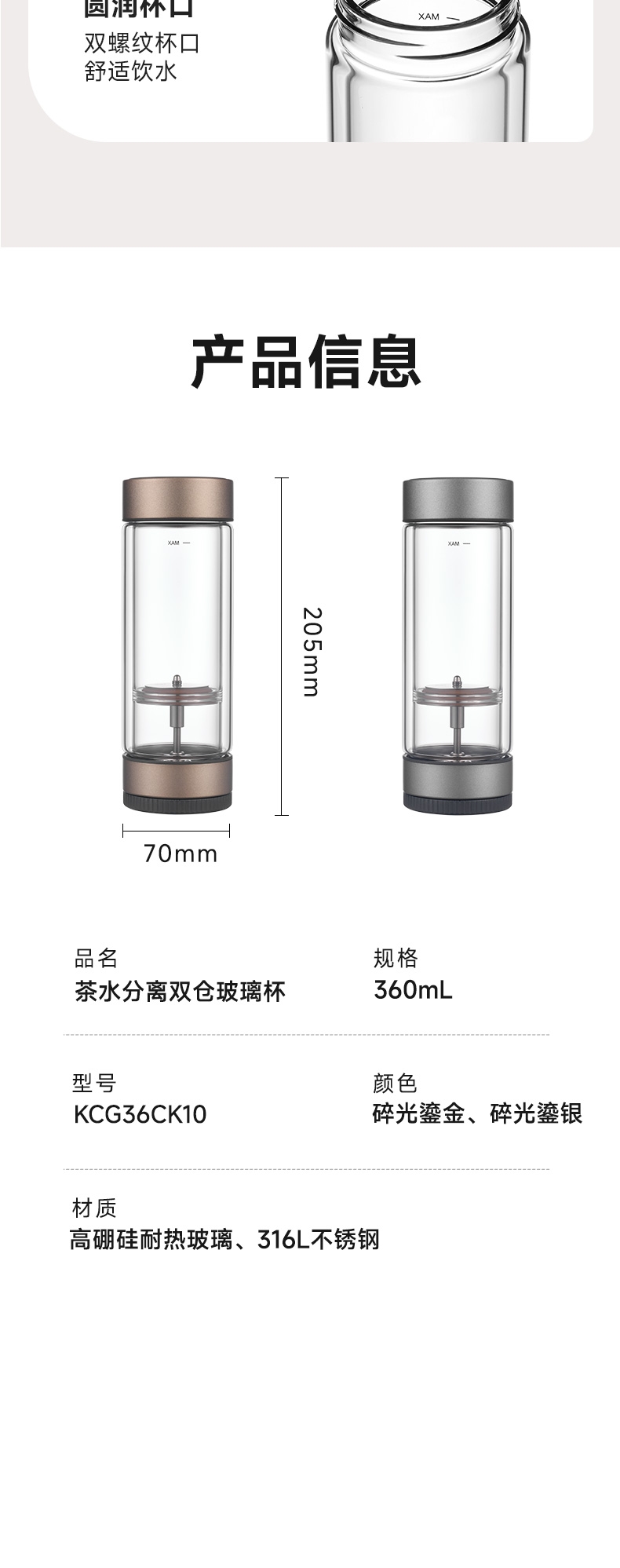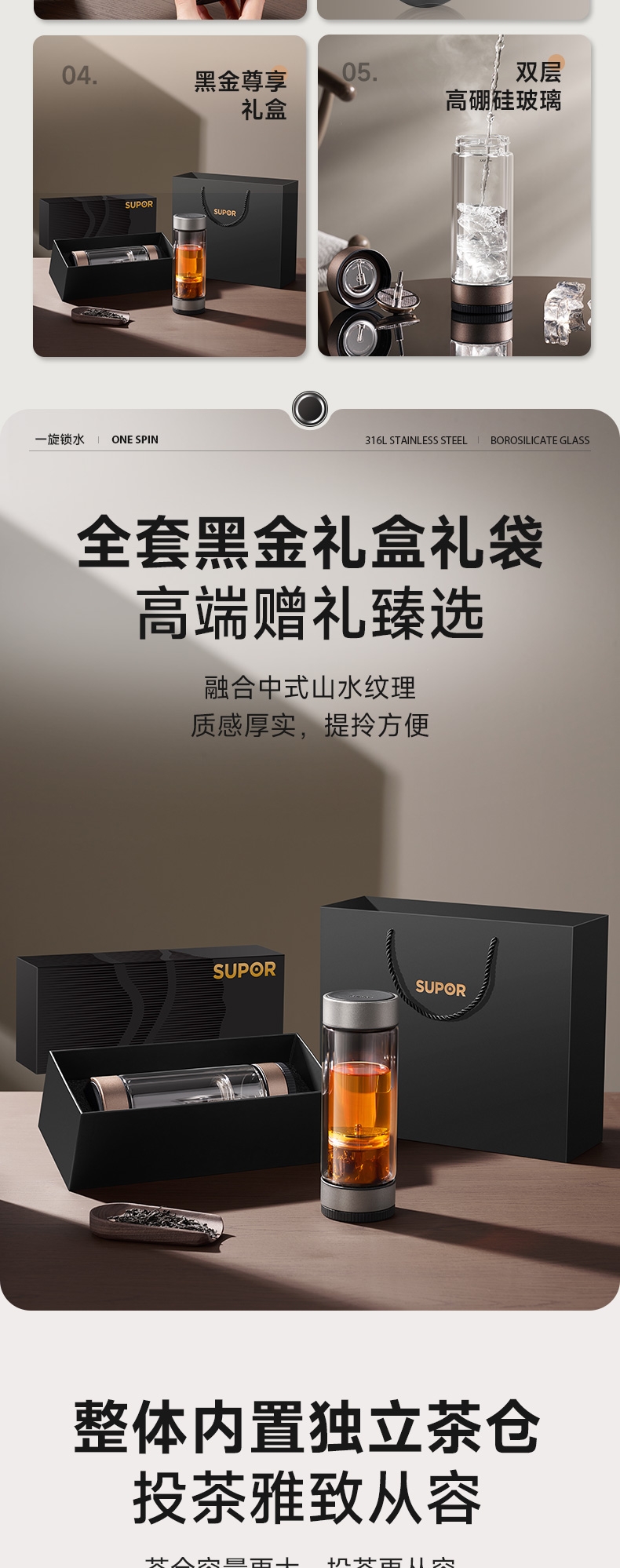 苏泊尔 茶水分离双仓玻璃杯KCG36CK10