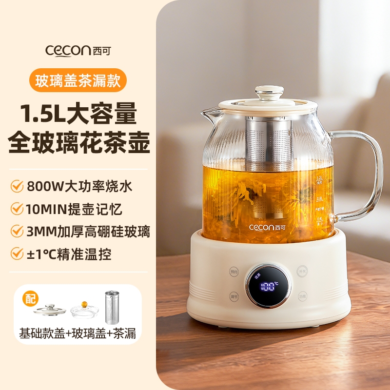 西可 全玻璃花茶壶保温多功能养生XJS-HCH-21H