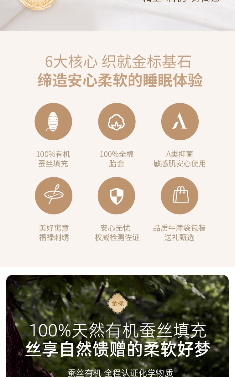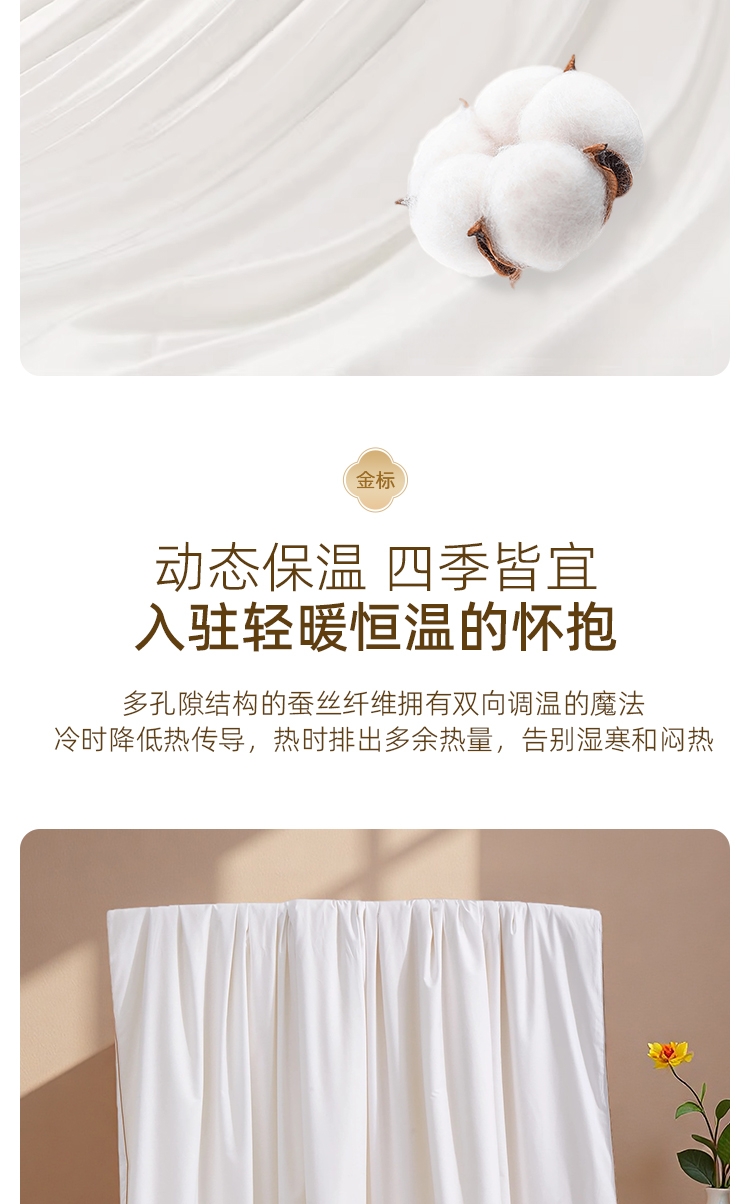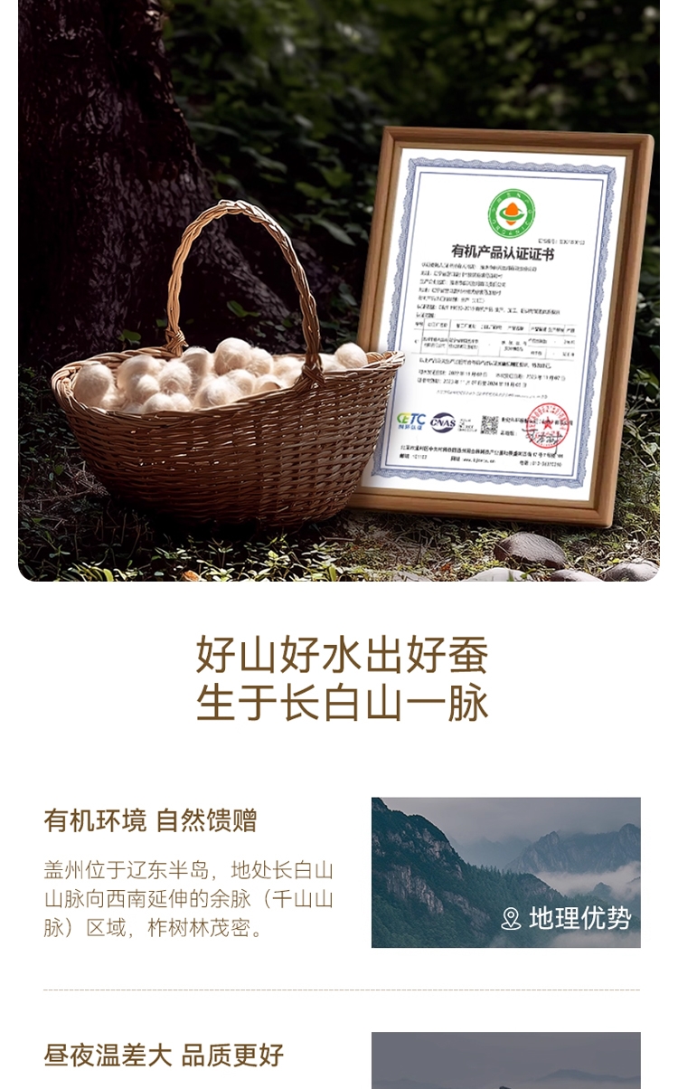 胎套甄选100%全棉面料,亲肤透气,纯净柔白;内芯填充100%有机蚕丝,源自长白山天然野生蚕丝;针尖锦绣,好寓意,传递美好祝福!