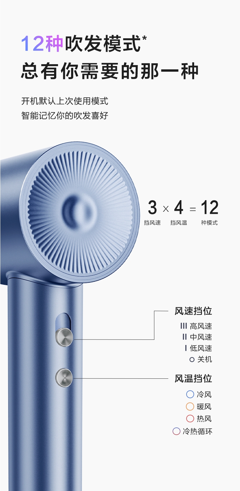 高速电机,39亿等离子;2、12档模式,3档风速,4档风温 ;磁吸可拆进