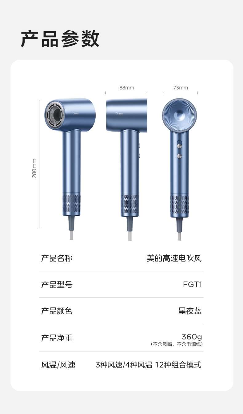 美的 高速电吹风FGT1