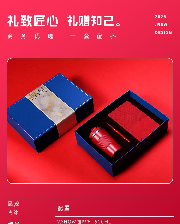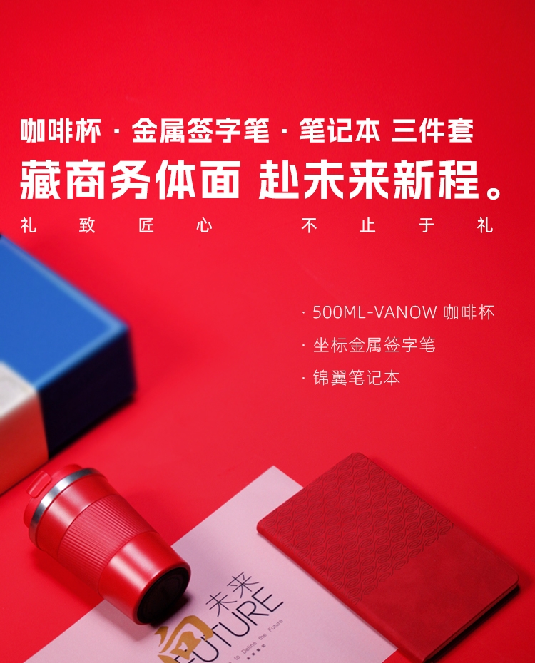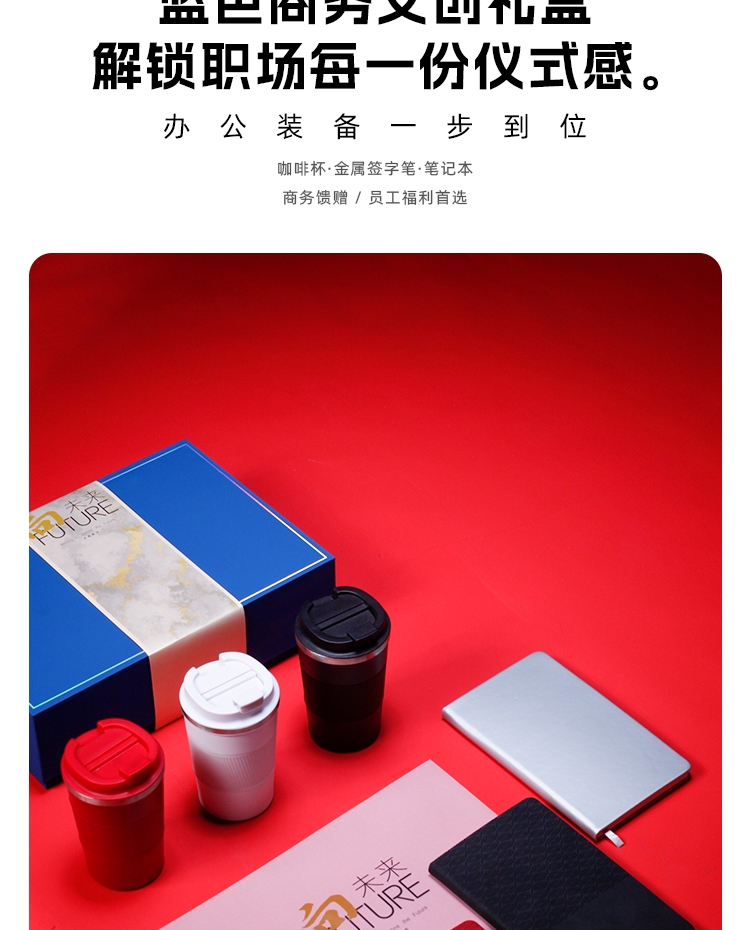品牌联名加持,质感高级,送礼更有档次。;沉稳大气,适配商务、职场、企业场合,颜值与体面兼备;咖啡杯 + 金属签字笔 + 商务笔记本满足办公日常;金属笔书写流畅、笔记本厚实不渗墨、咖啡杯便携防漏。;
