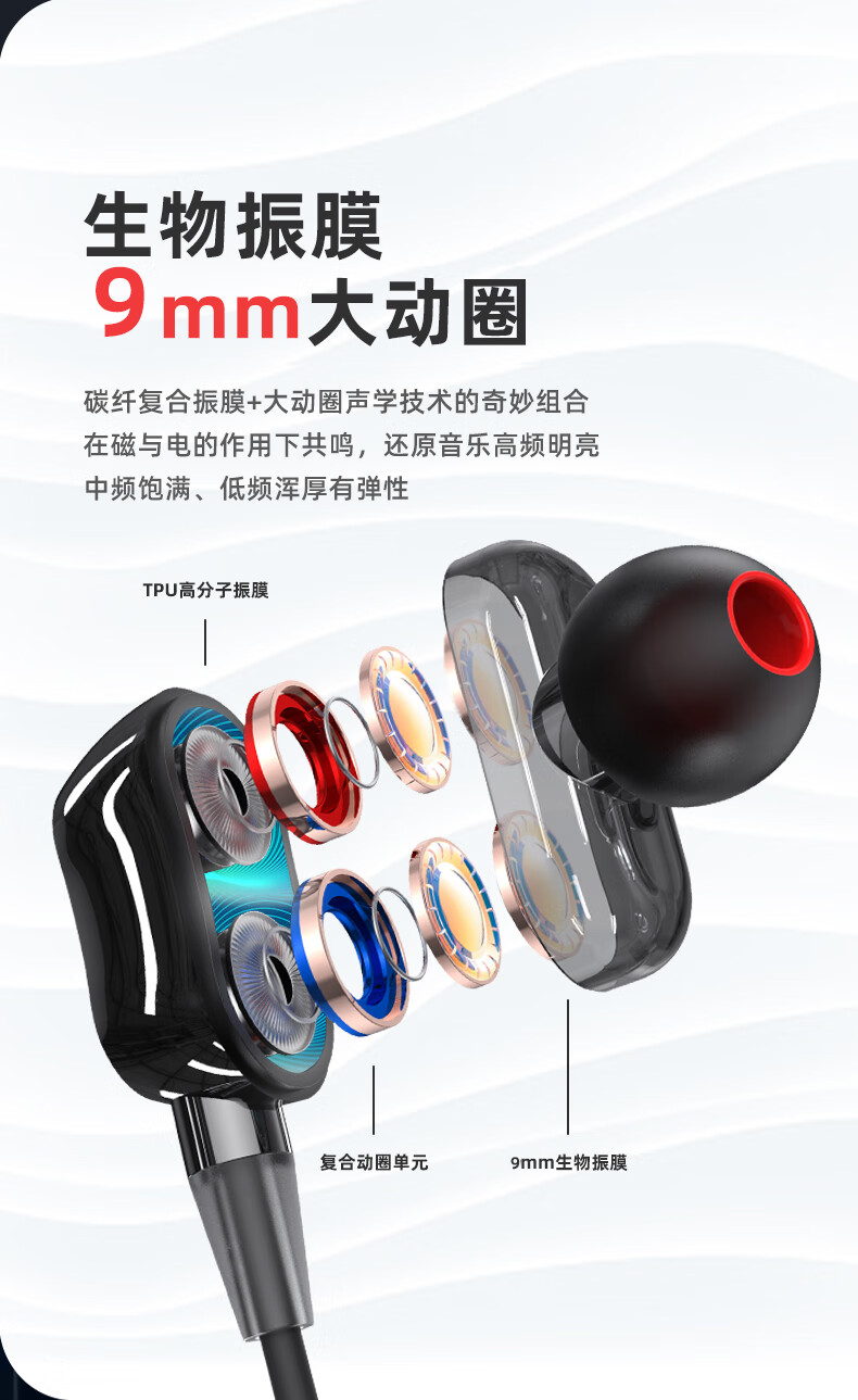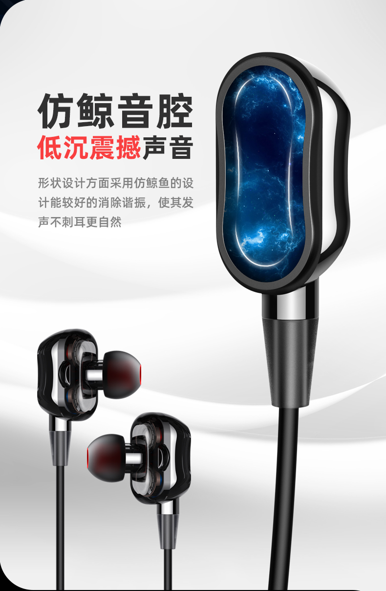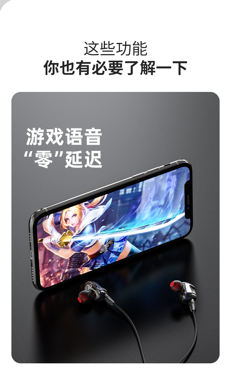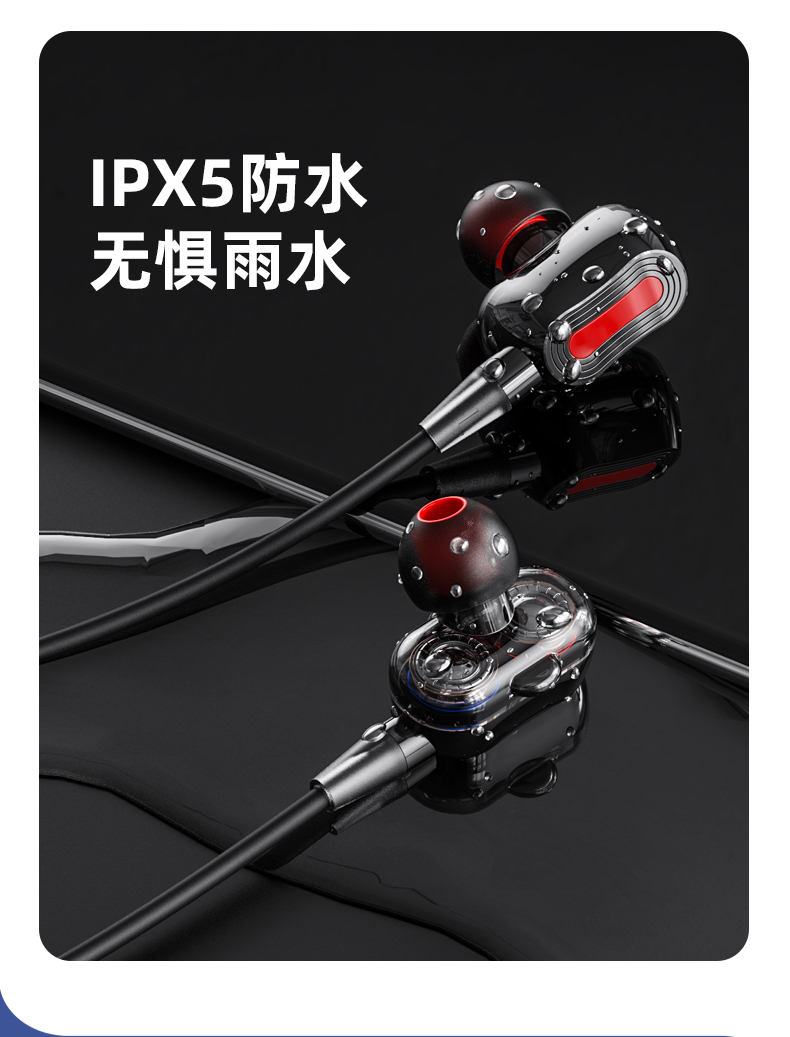 科学声腔设计,生物振膜,沉浸体验;两核心单元四喇叭发声;亲肤材质人体工学挂式设计,舒适佩戴运动狂甩不掉