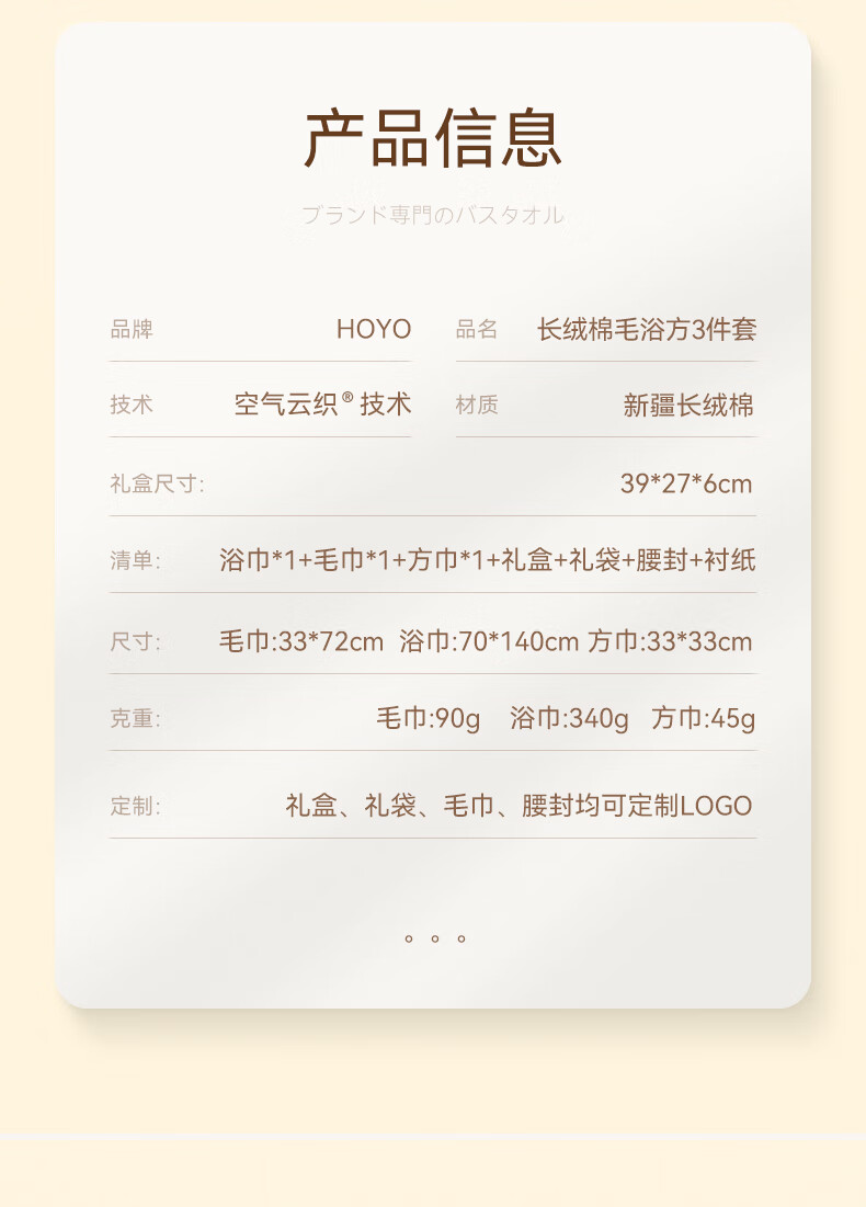 HOYO 新疆棉方毛浴套装浅咖JP1212