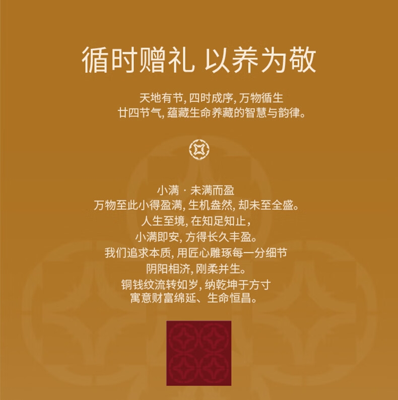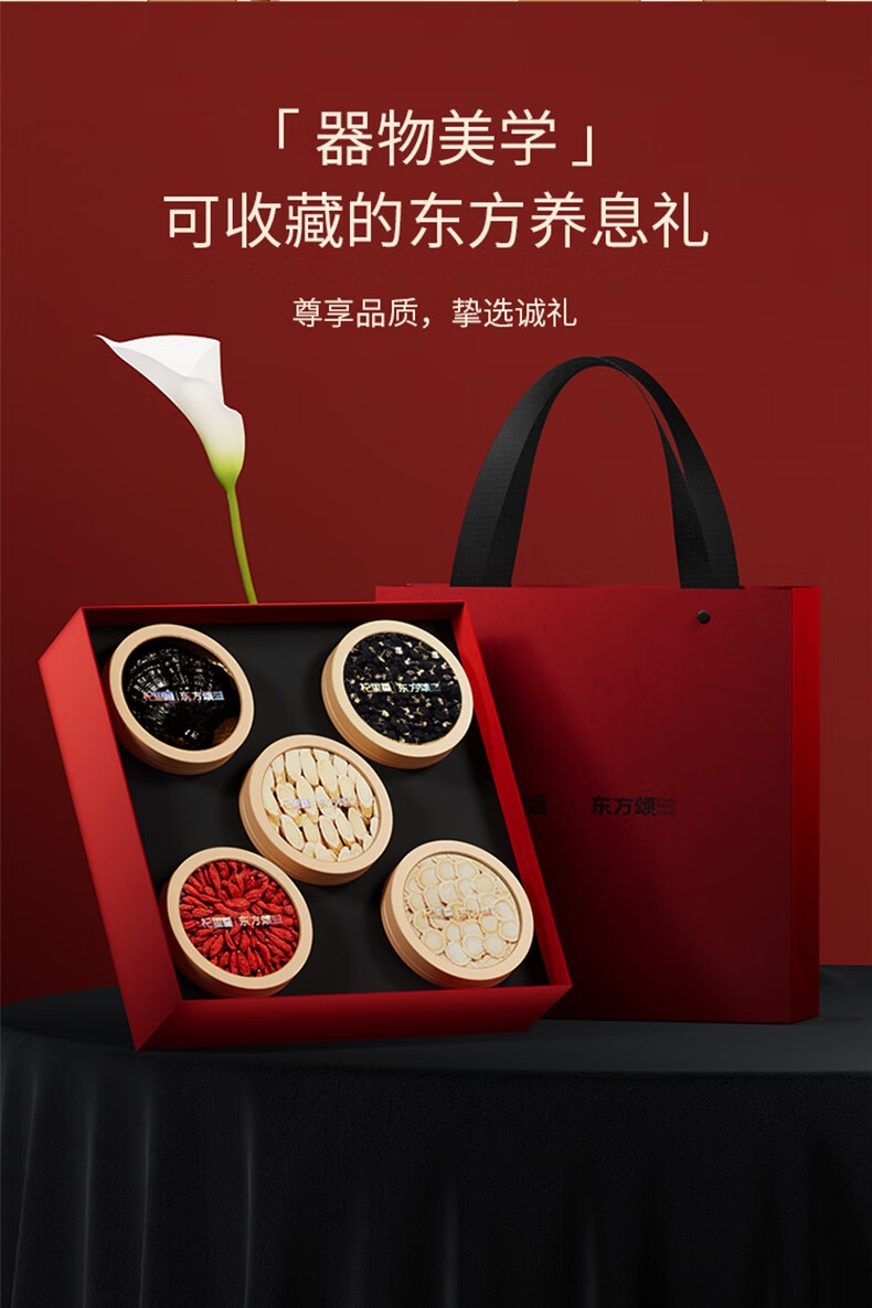 严选核心产区道地食材,手工精选,品质保证;精选五款名贵中草药材,营养更丰富,食用方案更多样;高端礼盒装,送礼有面儿