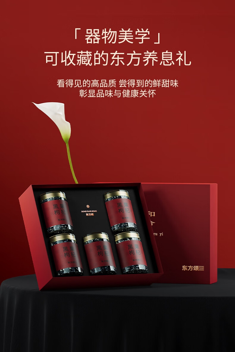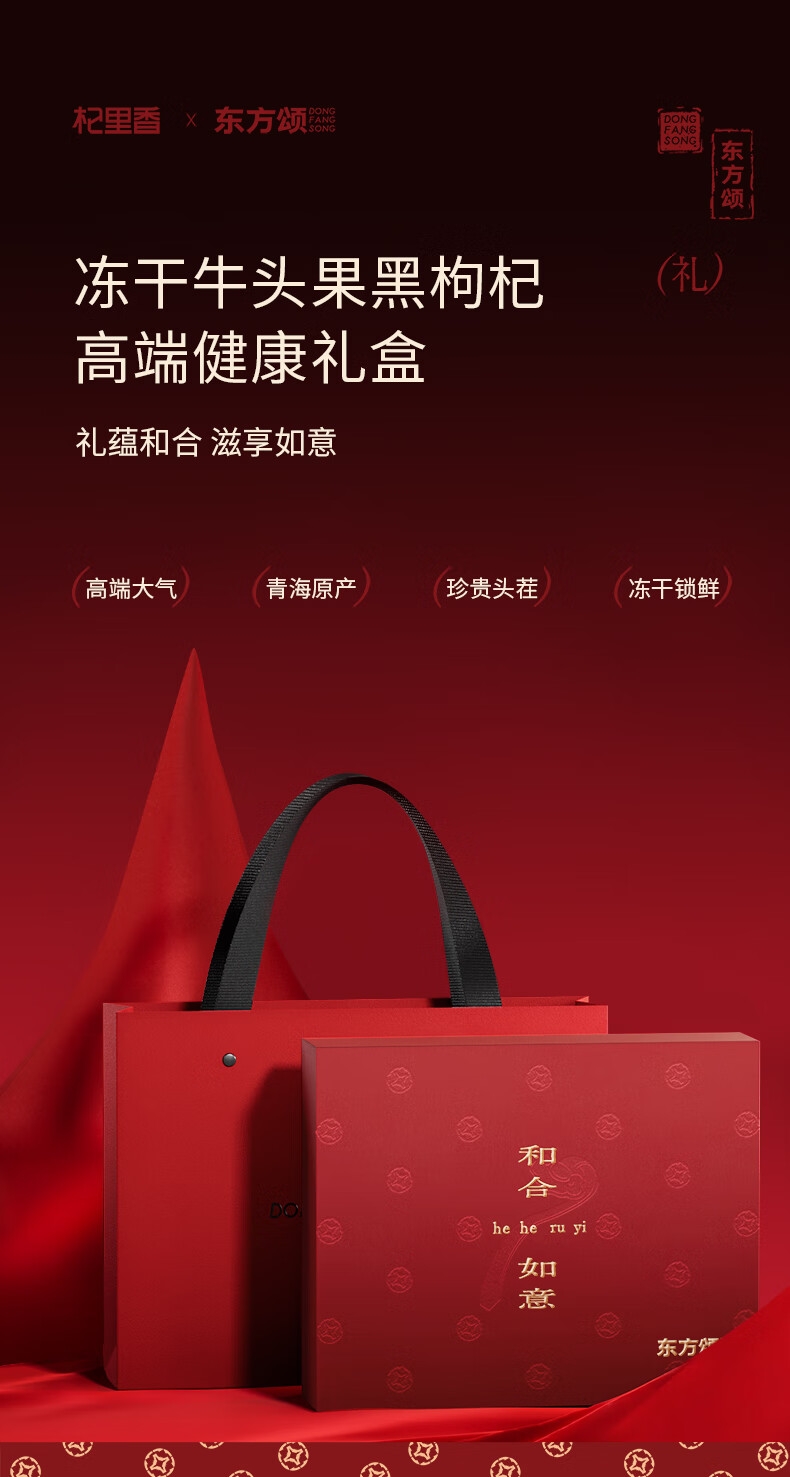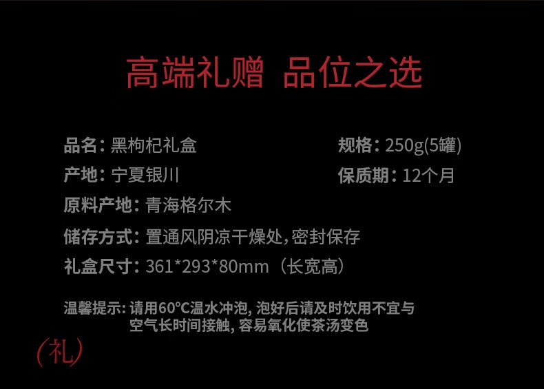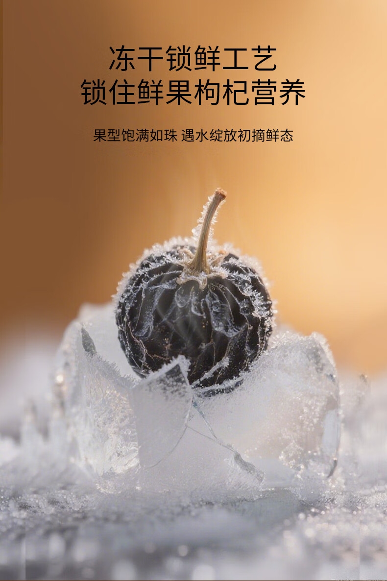 严选青海核心产区牛头果黑枸杞,个头更大,营养更丰富;冻干锁鲜工艺,锁住鲜果枸杞营养;高端礼盒,送礼有面儿