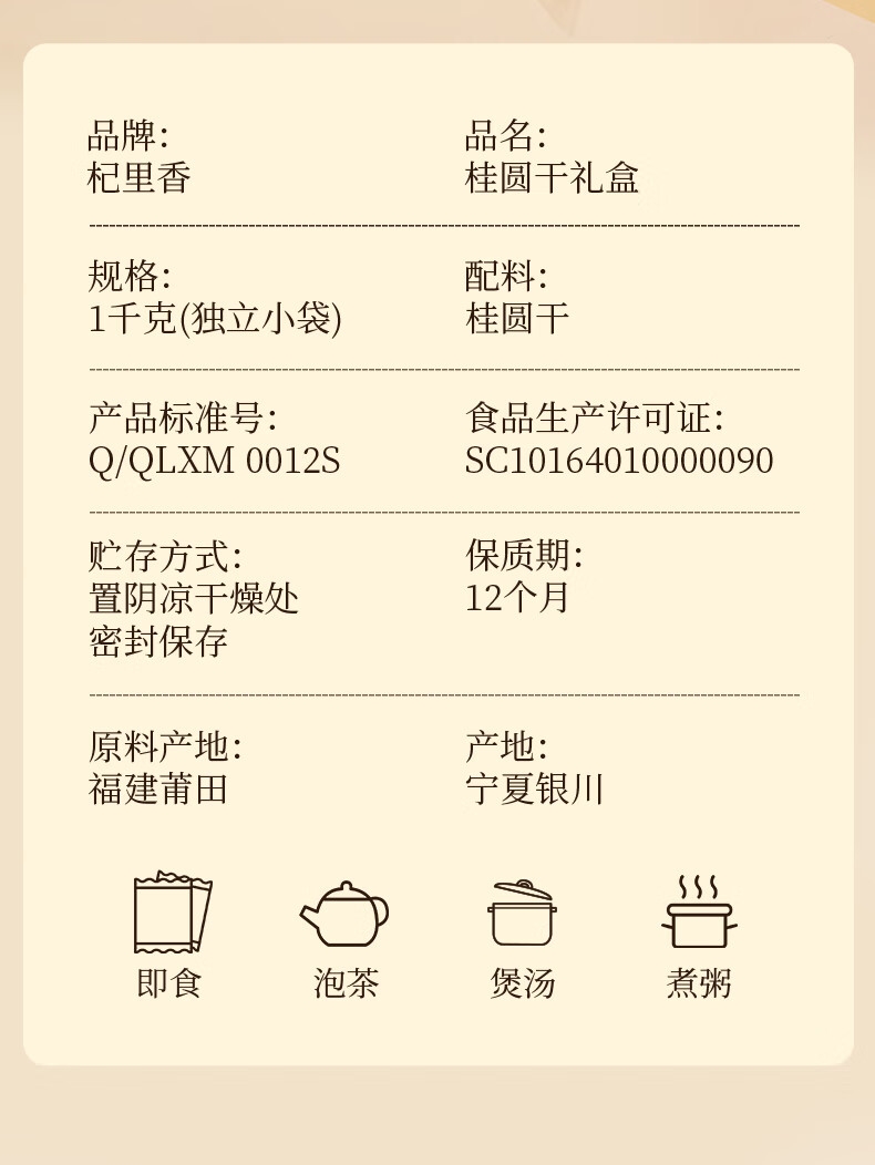 配置清单:福建莆田桂圆干1kg、礼盒*1