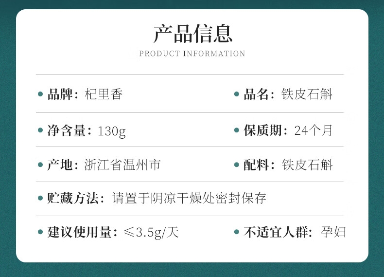 配置清单:铁皮石斛130g,礼盒*1,礼袋*1
