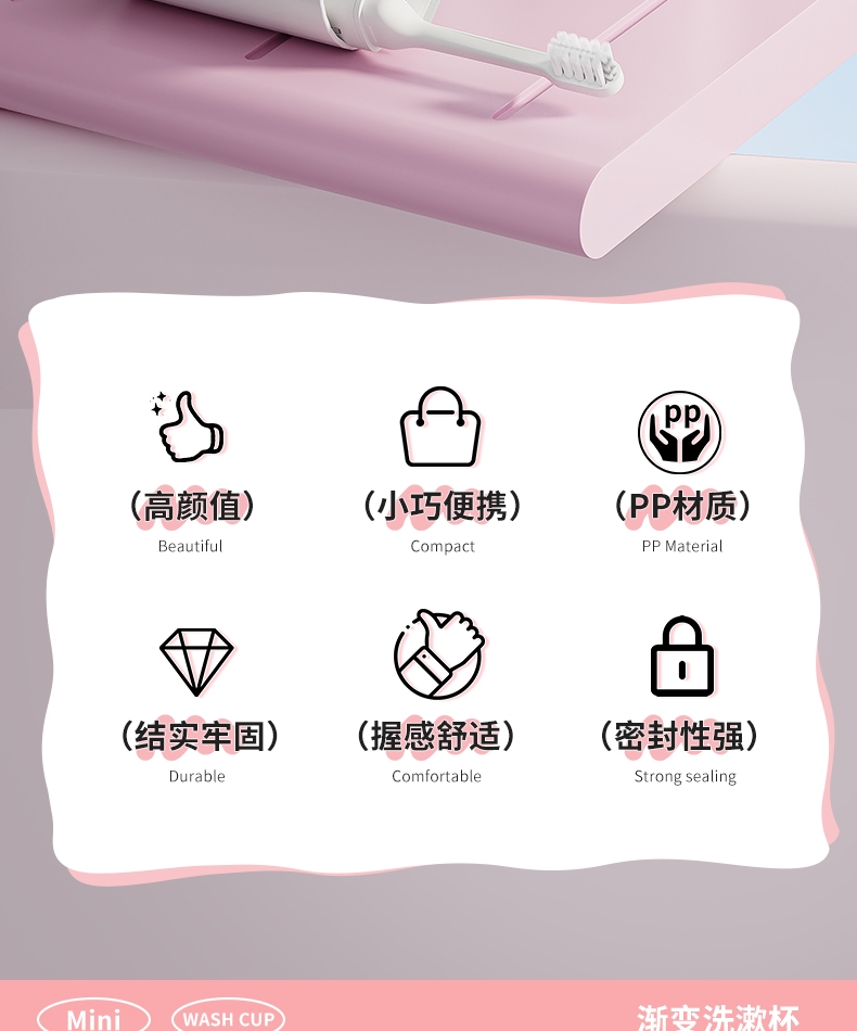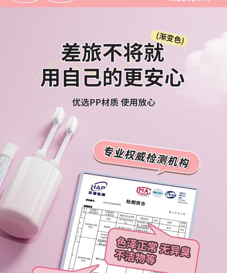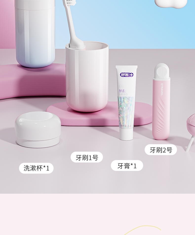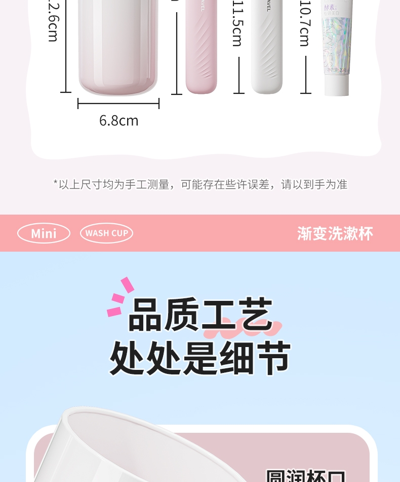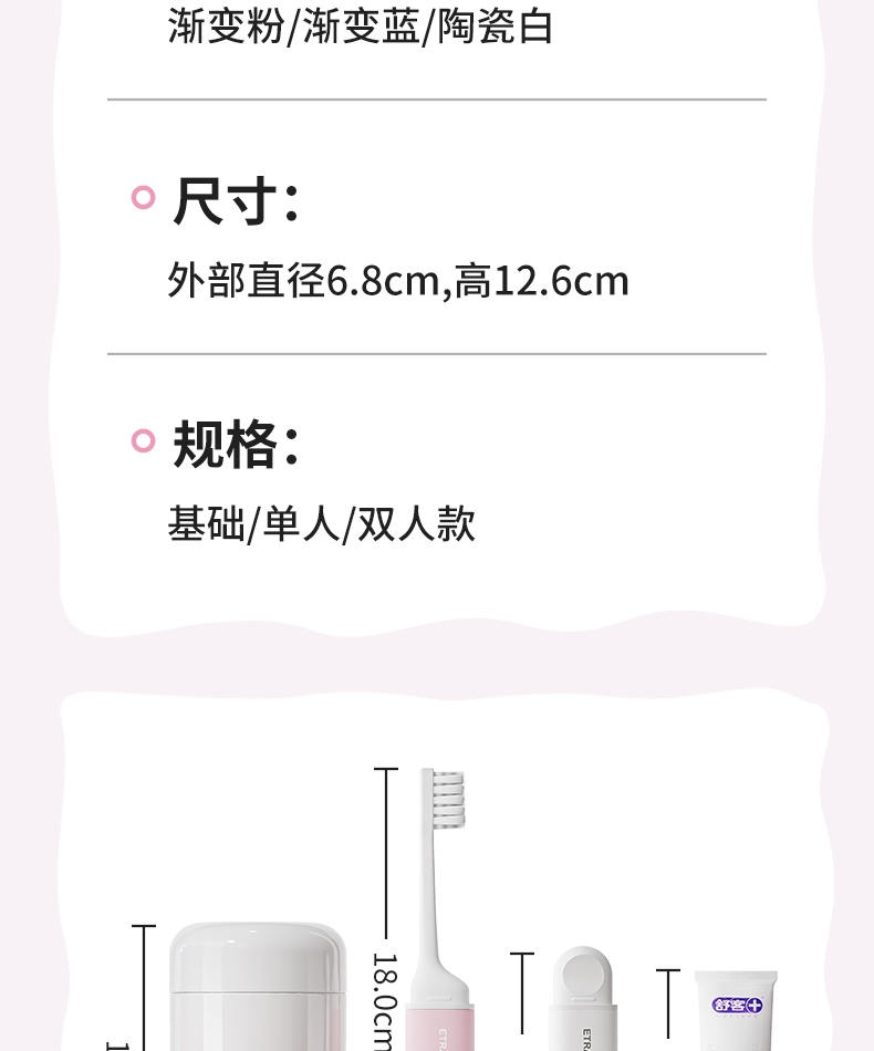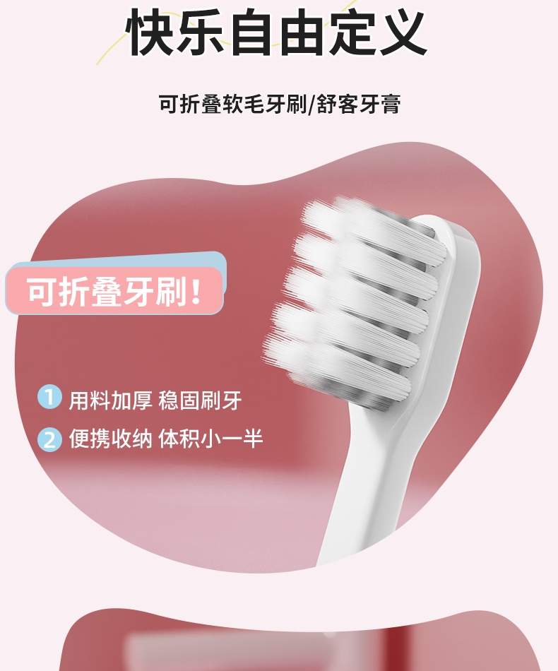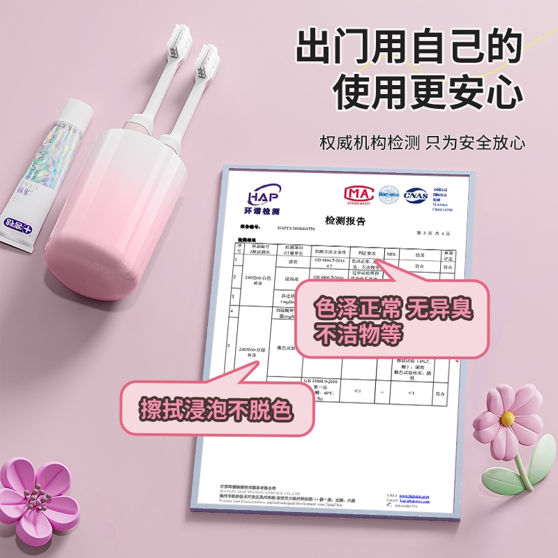 抗菌材质,小巧便携,轻量随行;可装下折叠牙刷品牌牙膏;轻奢撞色美学