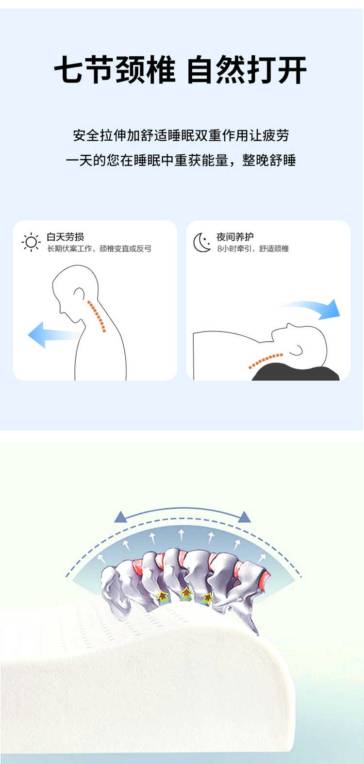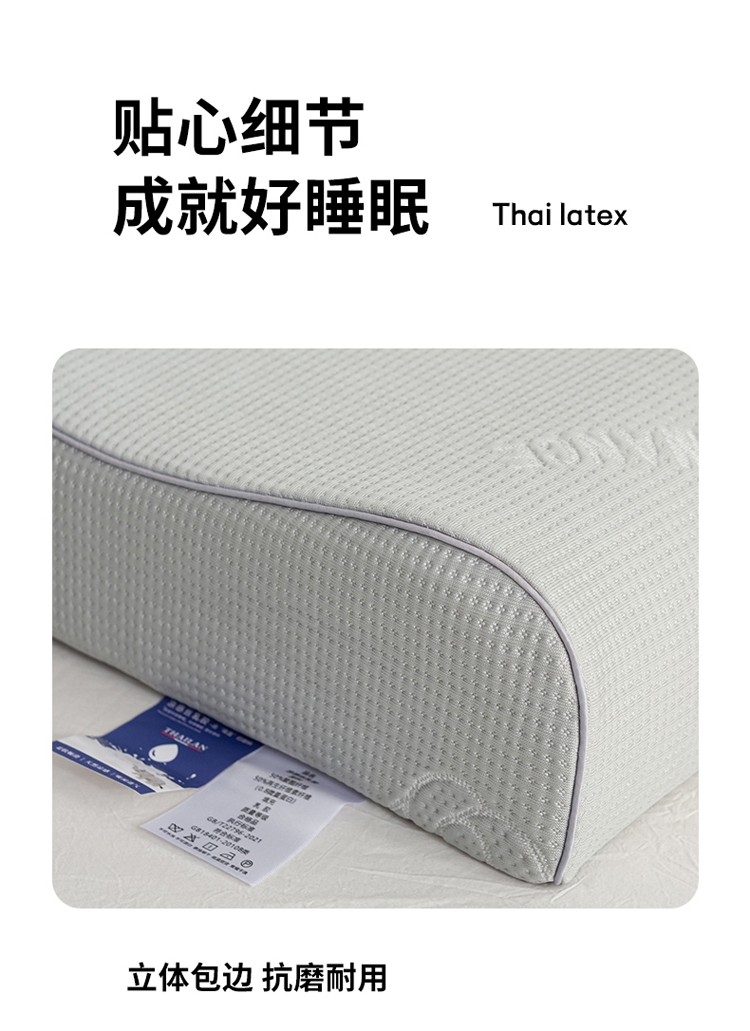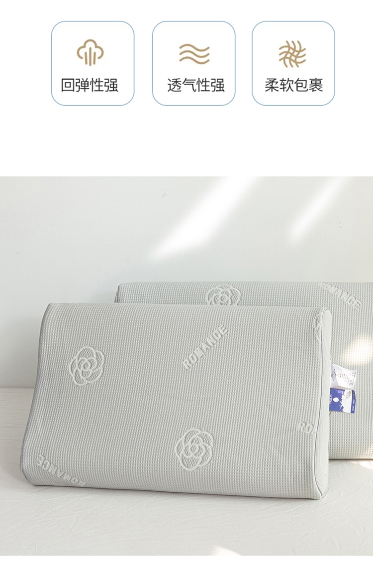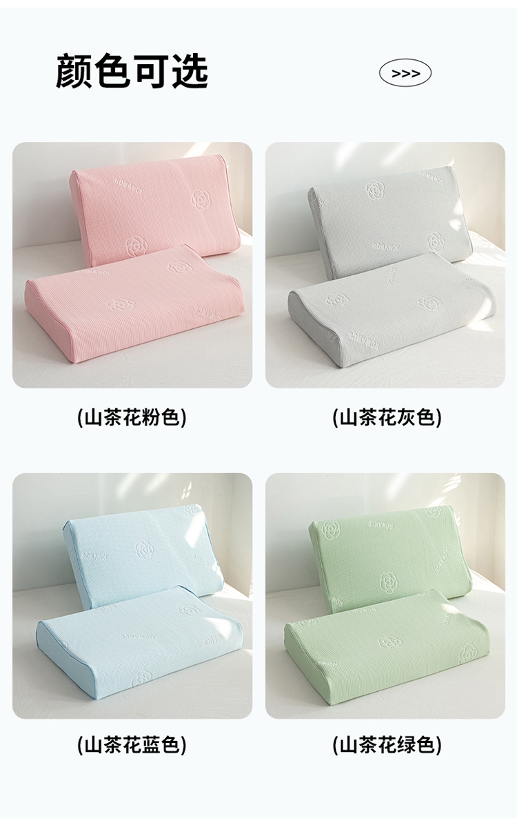 山茶花凉感乳胶枕 乳胶高低分区牵引舒享好睡眠;四区承托改善肩颈问题 (仰睡侧睡都很舒服);科学曲线分散睡压 仰睡牵引不反弓 侧睡适高不压肩