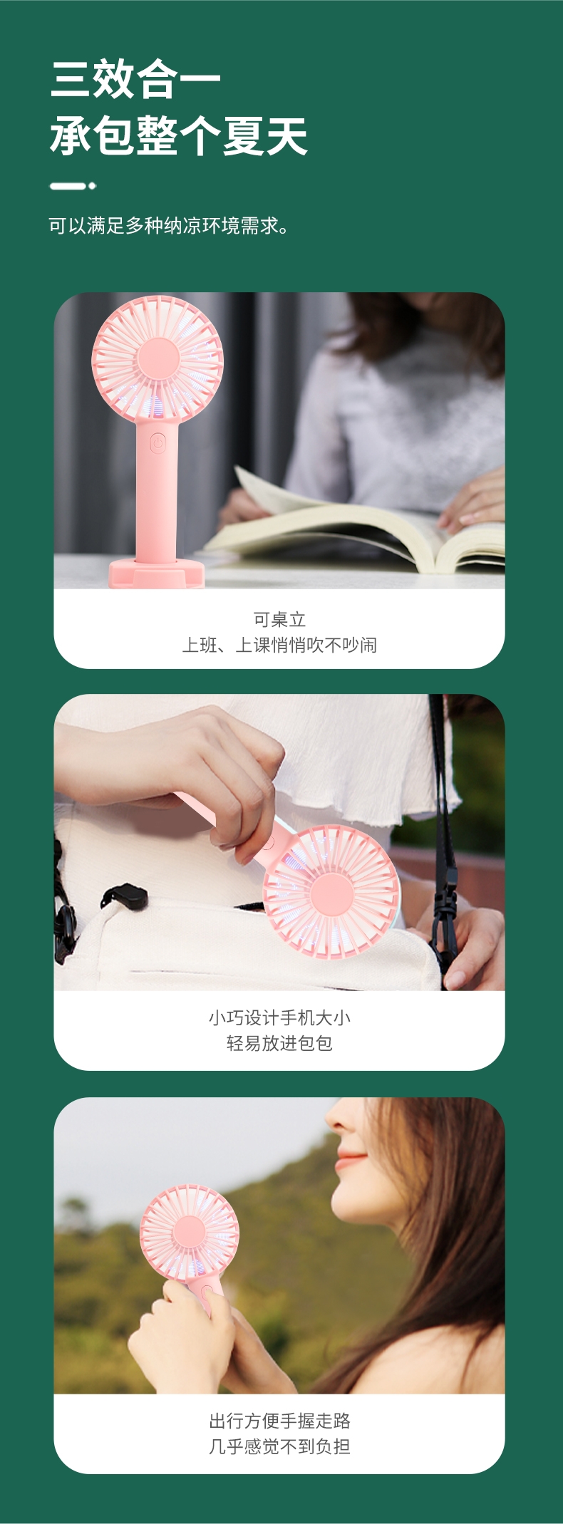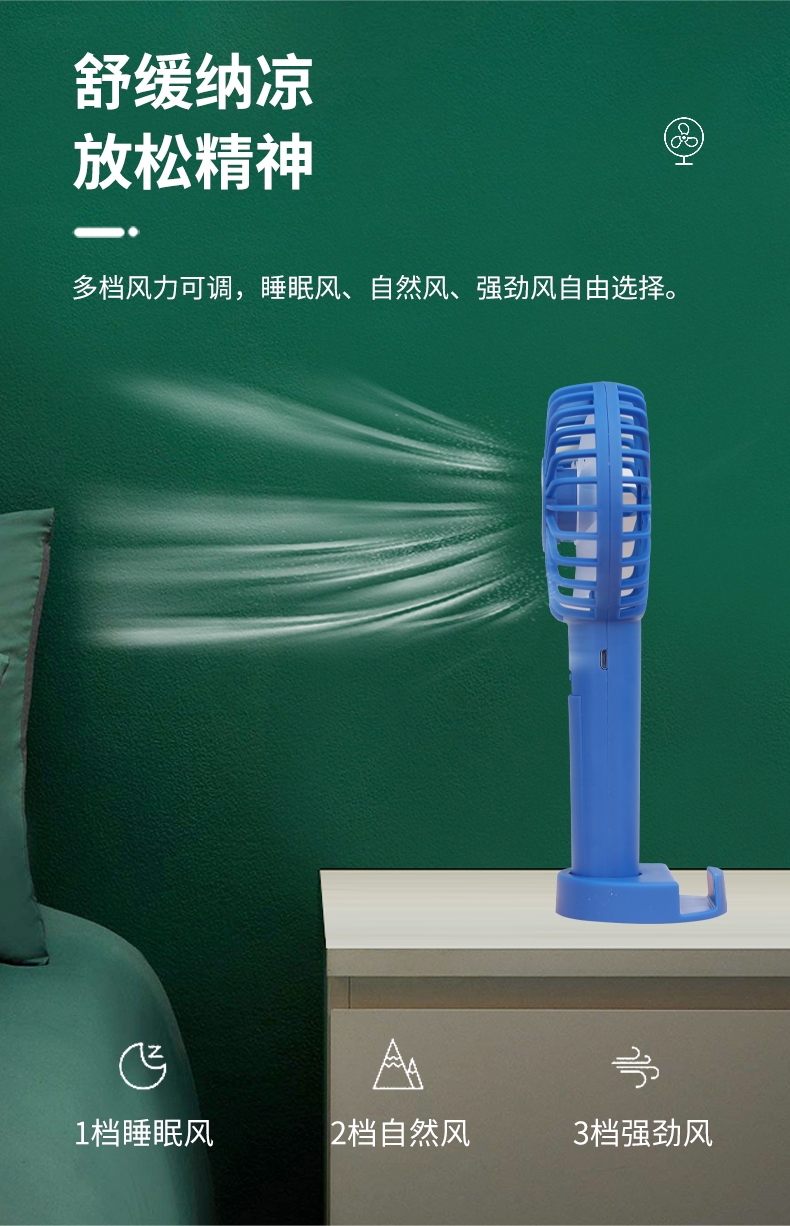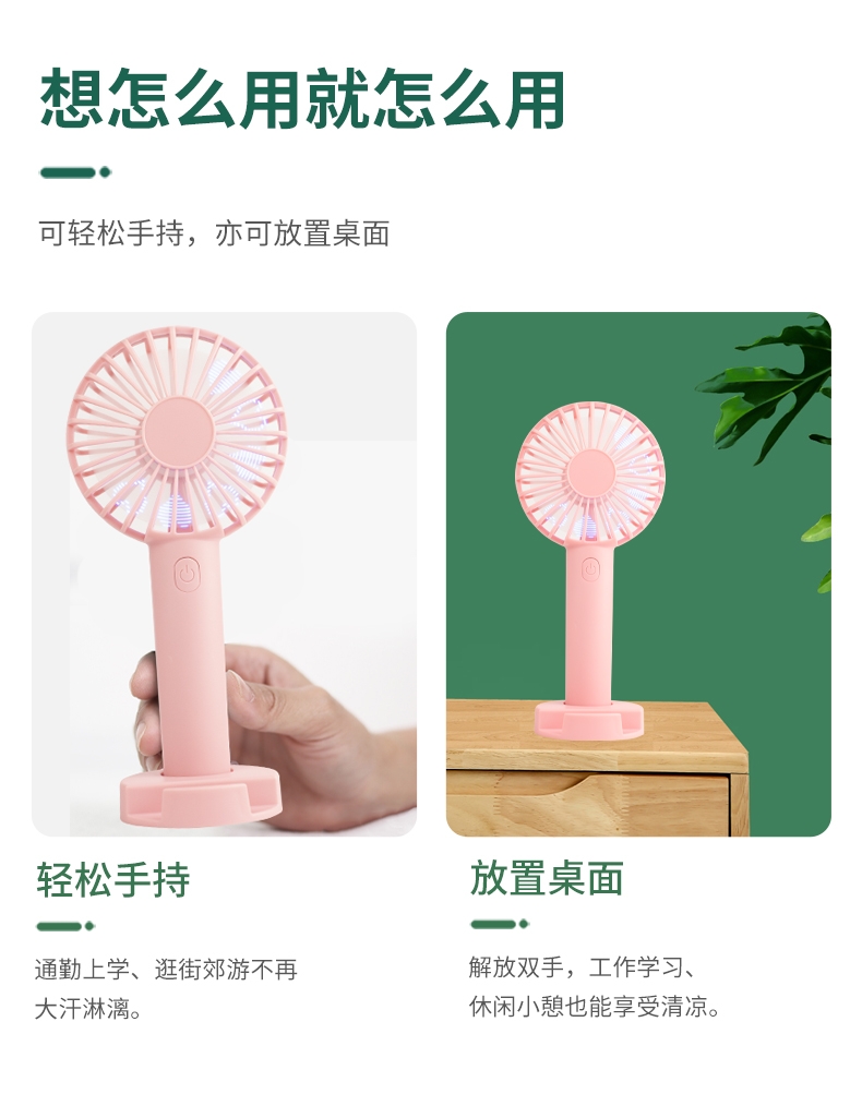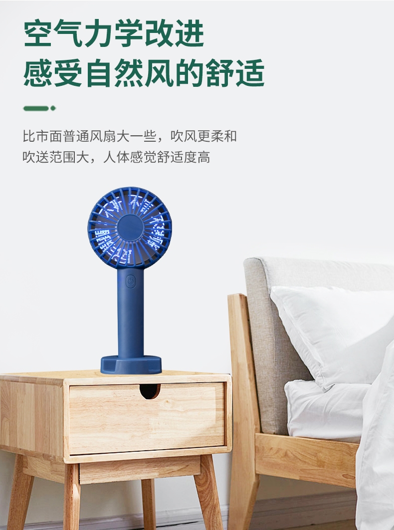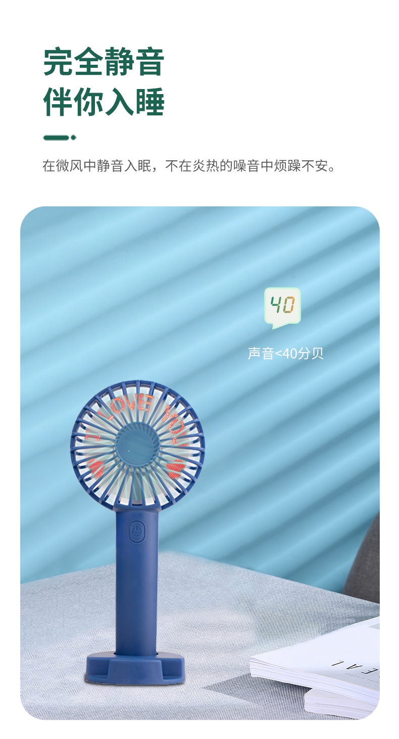 LED固定闪字风扇,广告标语定制,企业活动宣传好物;三档风力调节,小巧便于携带;搭配支架底座,手握立式两用