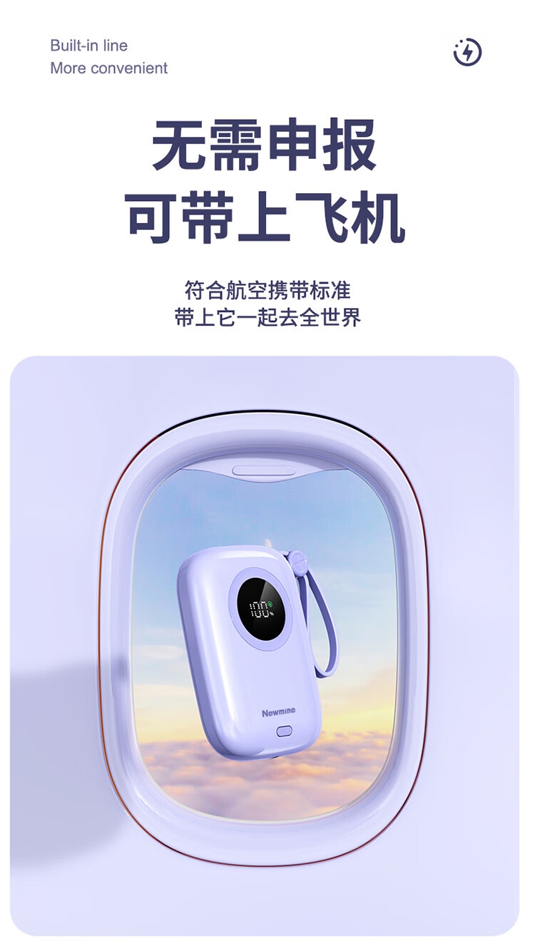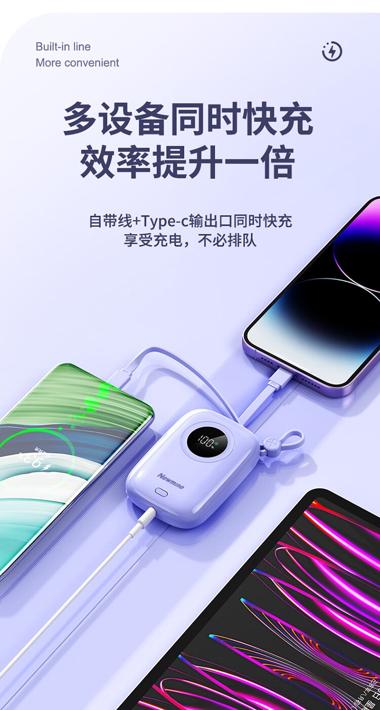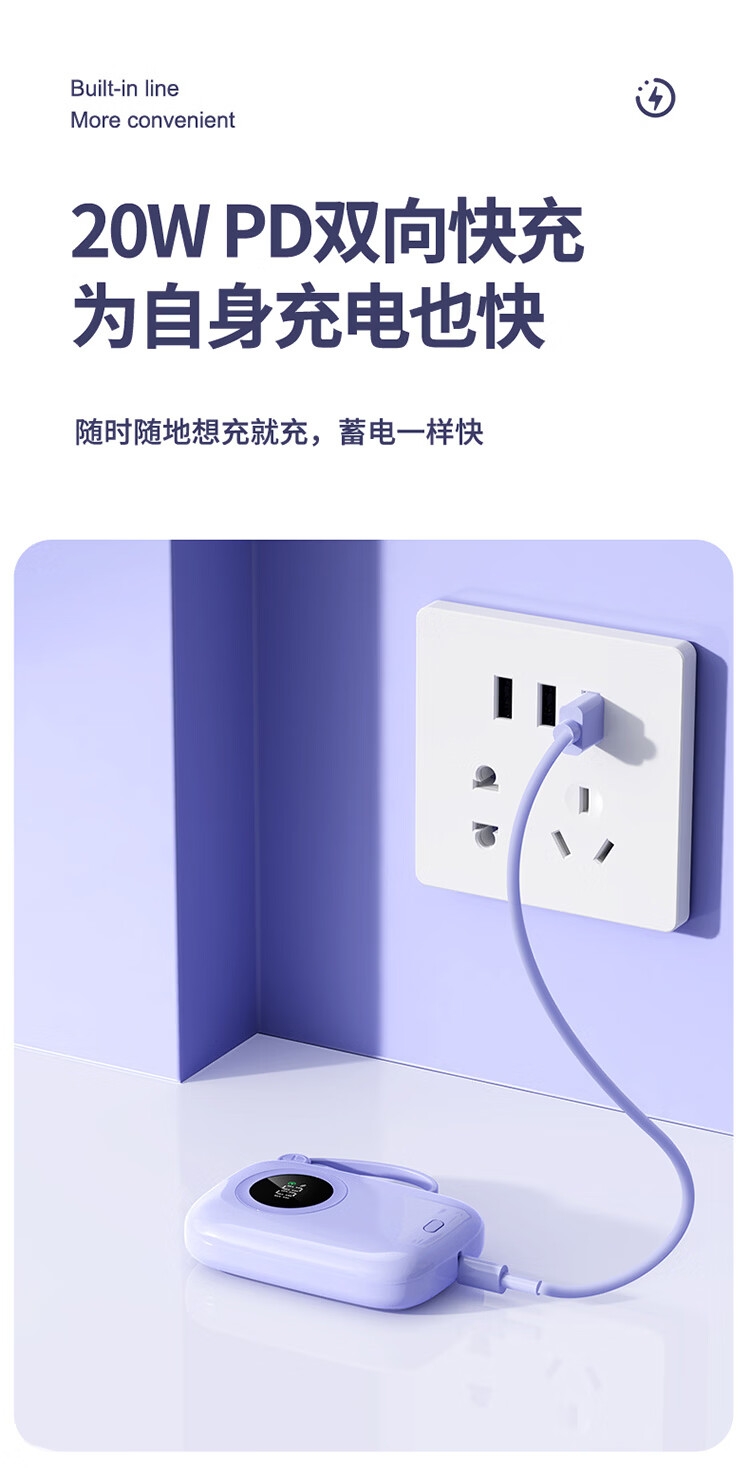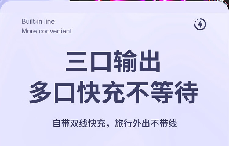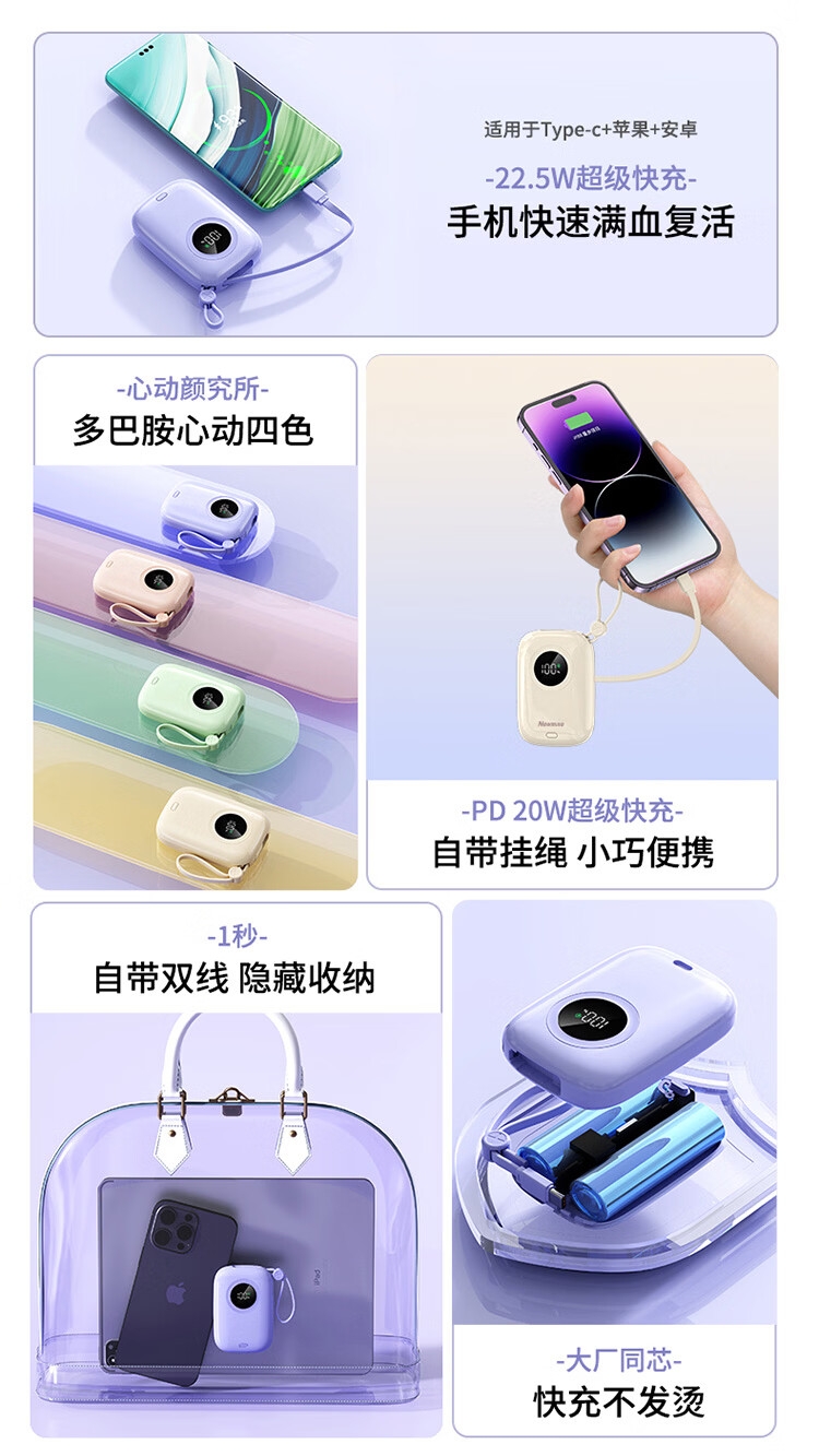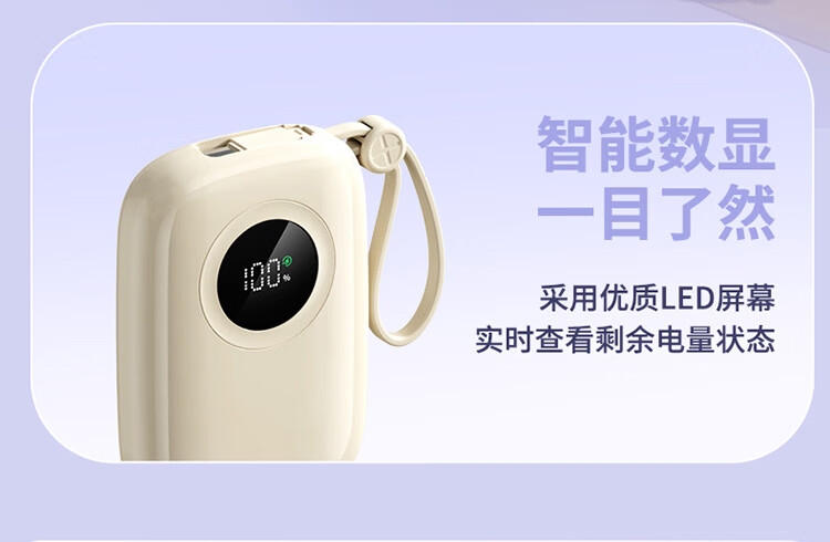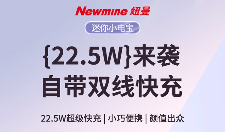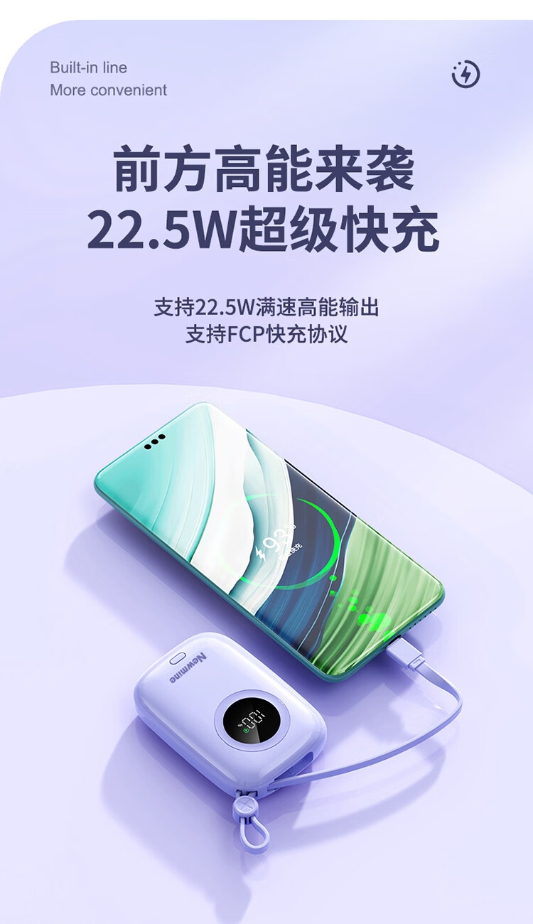 1万毫安大容量电池;22.5W快充;自带双充电线,带手提绳