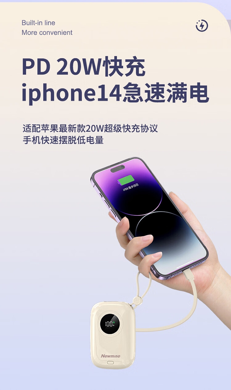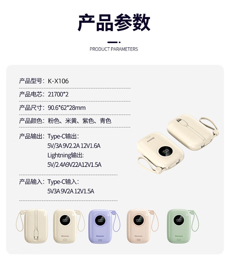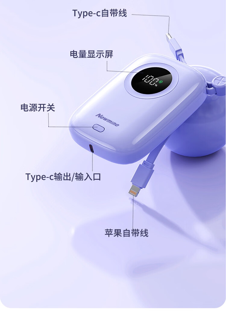 纽曼 3C充电宝自带线小巧便携式X-106