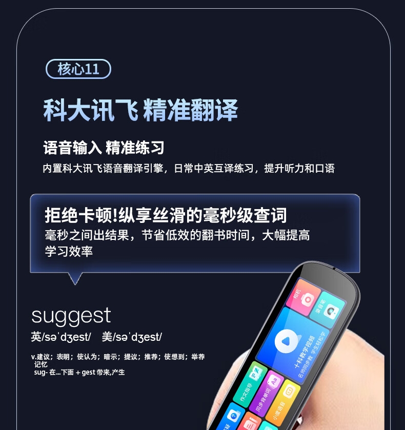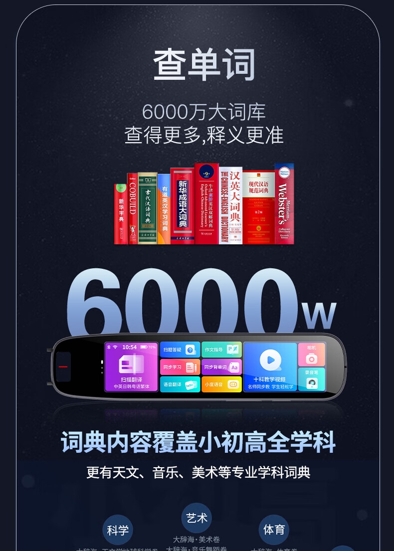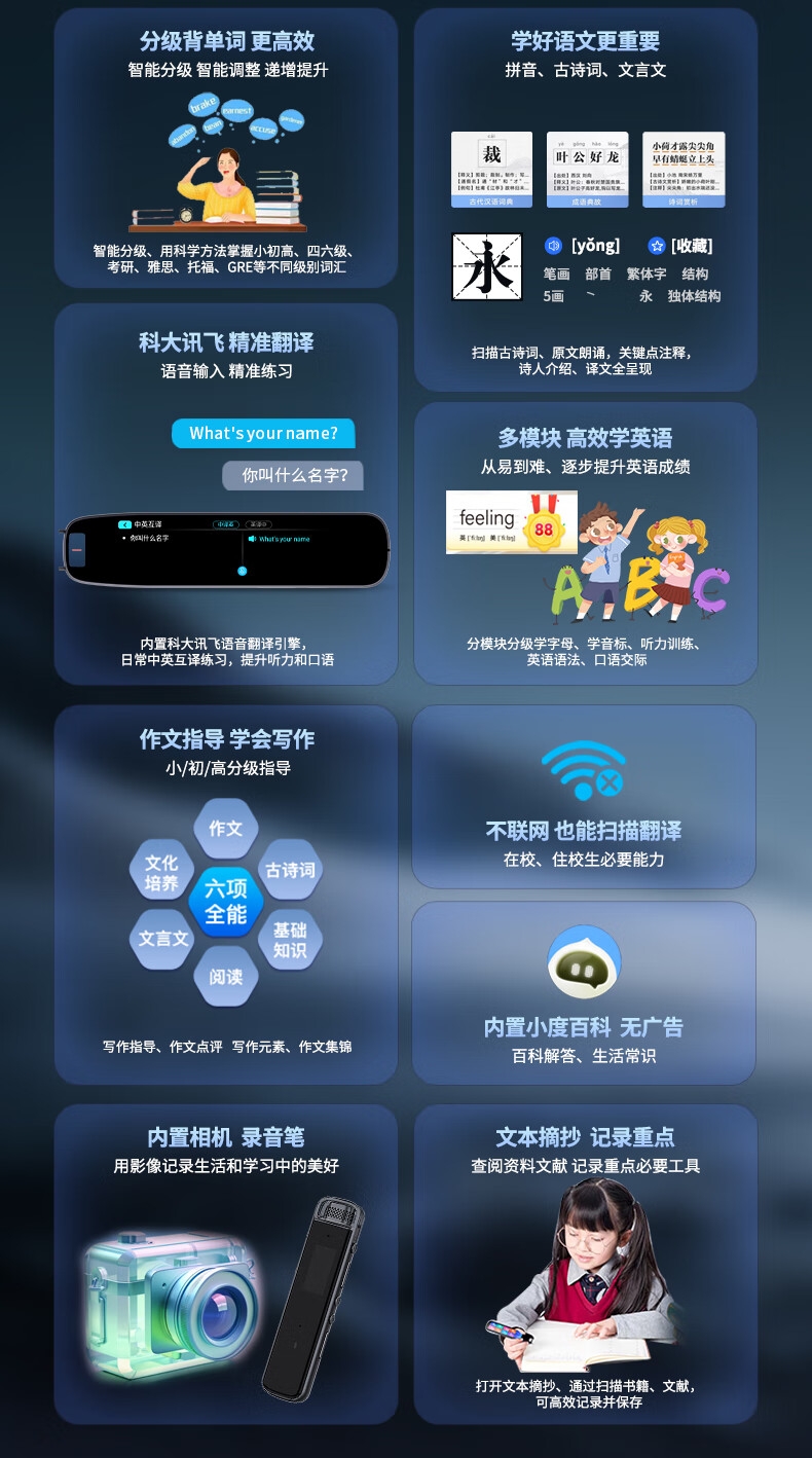4.56英寸大屏幕显示;128G大容量内存;小学初中高中全科学习词典翻译笔