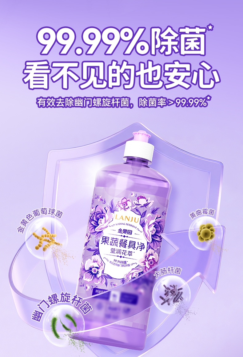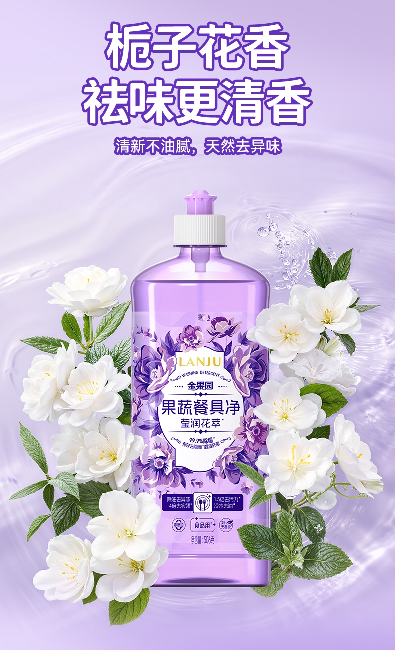榄菊 金果园莹润花萃果蔬餐具净506g