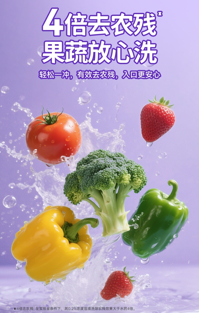 4倍去农残;1.5倍去污力;A类食品用