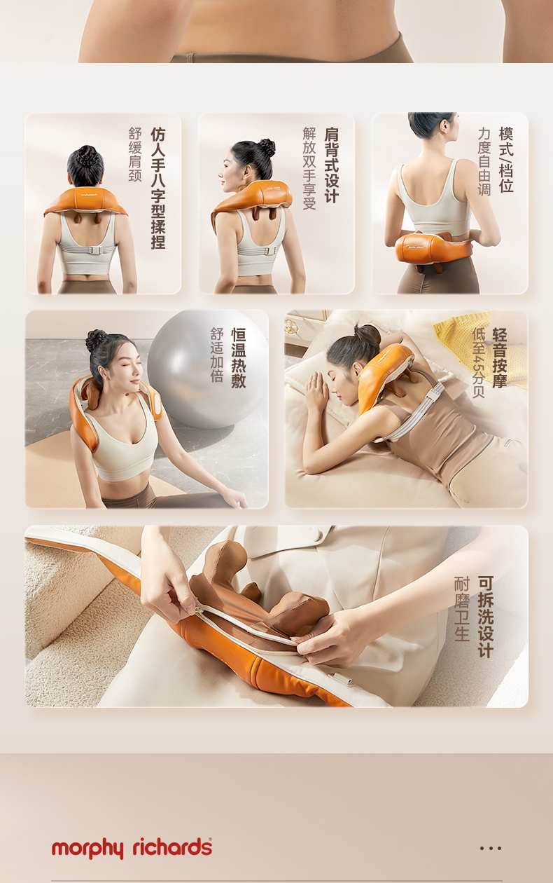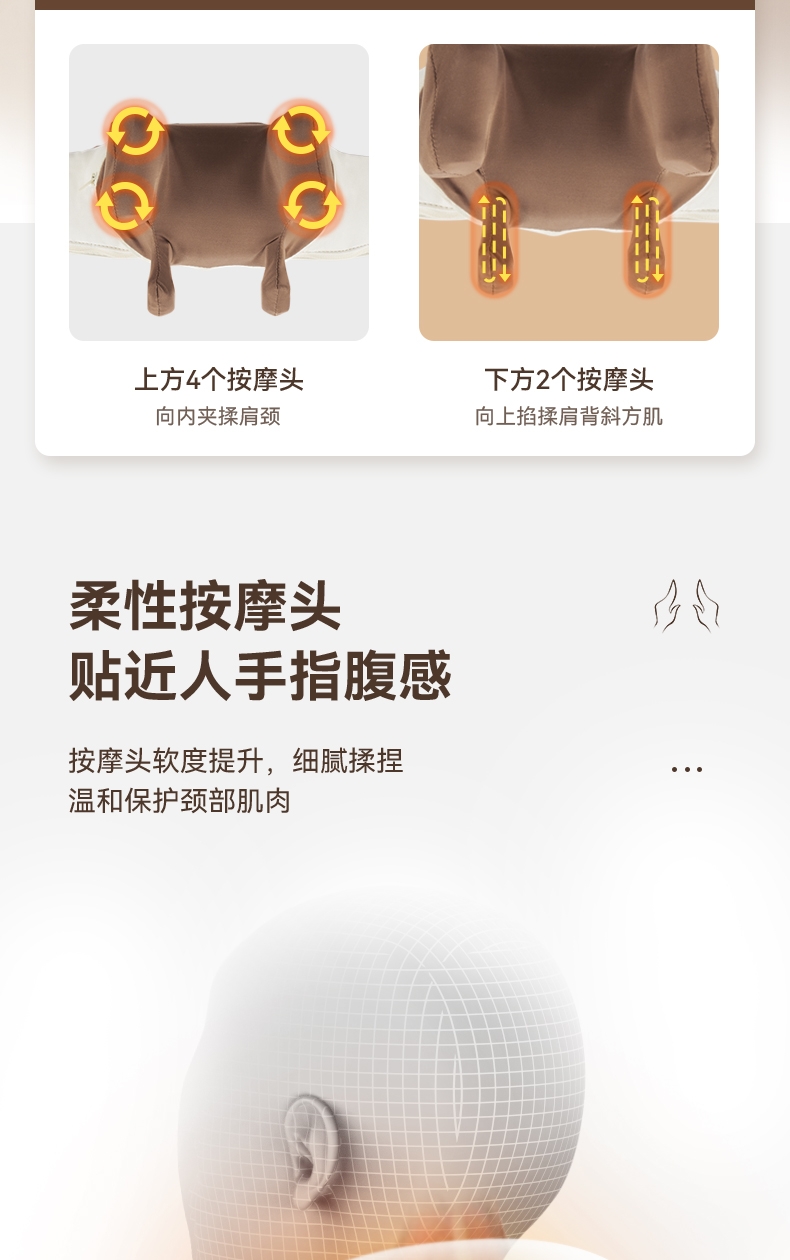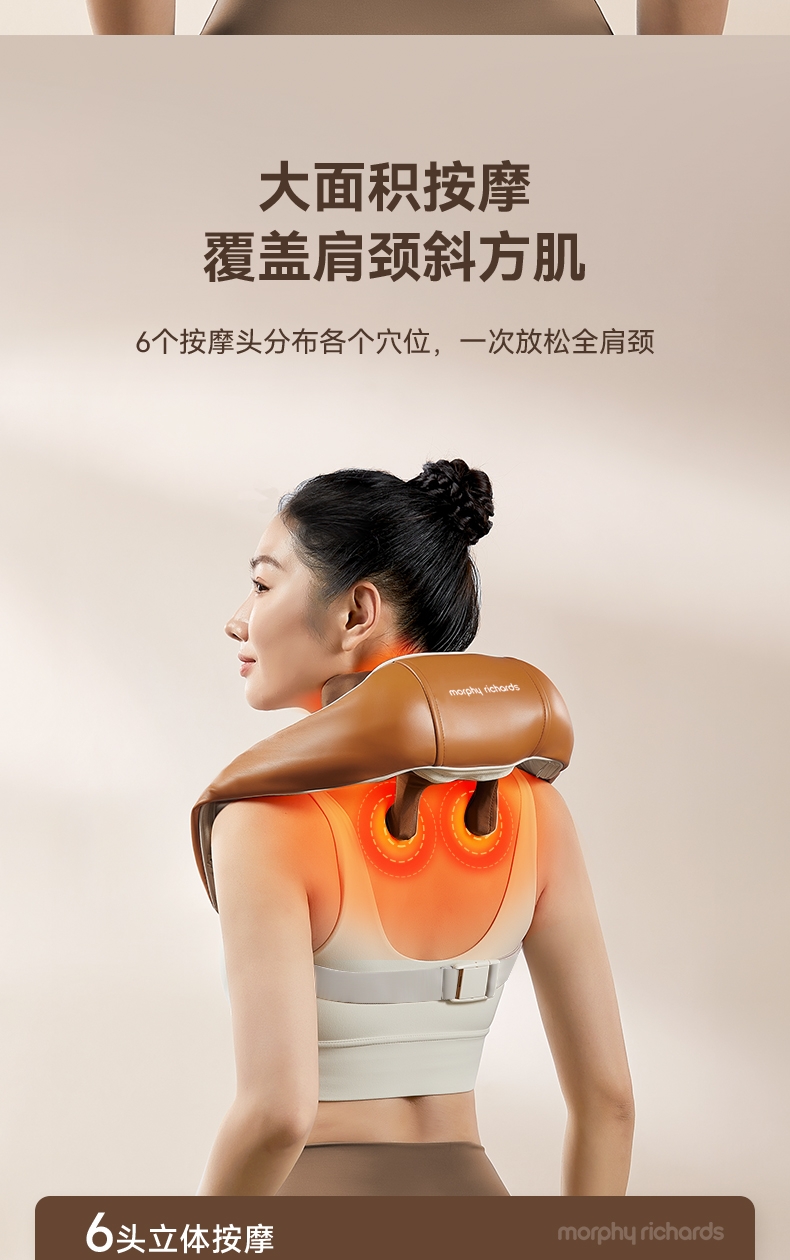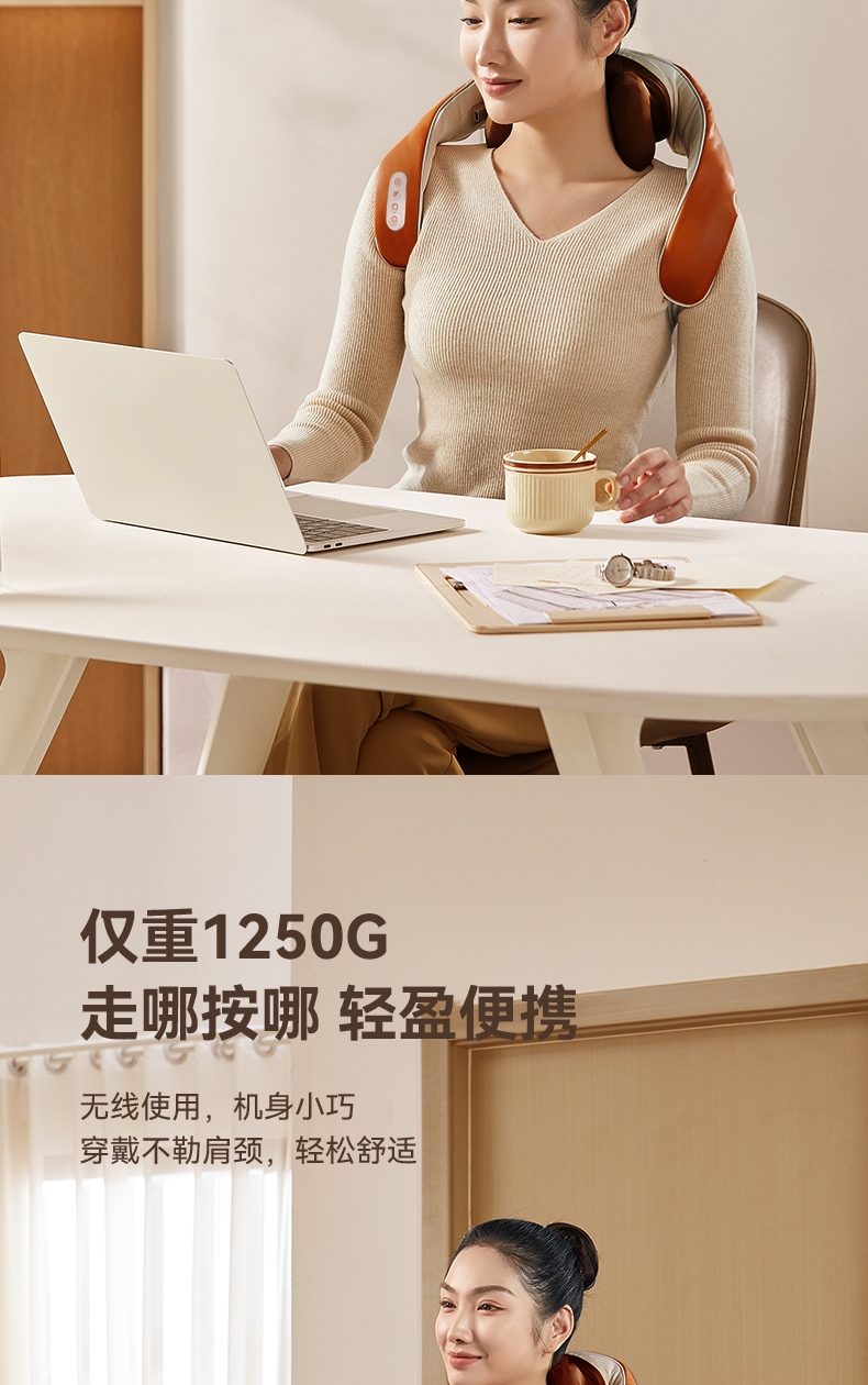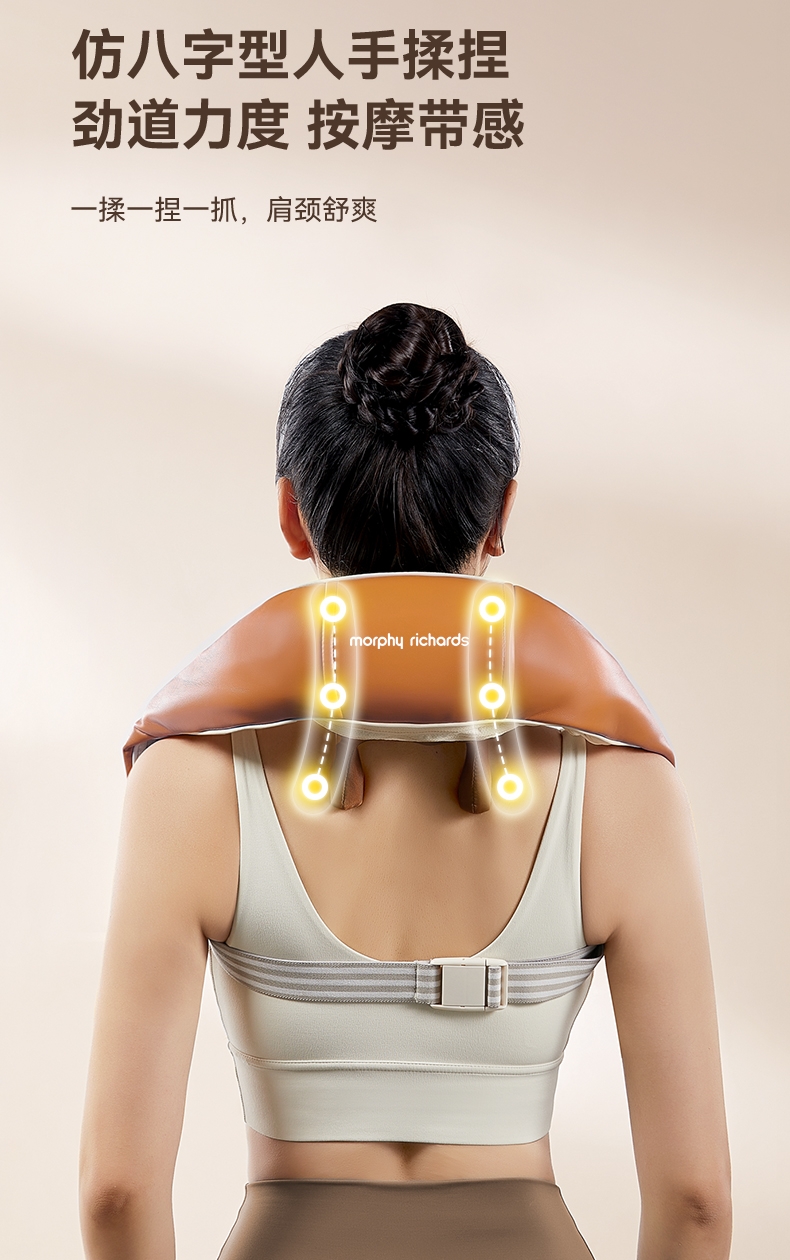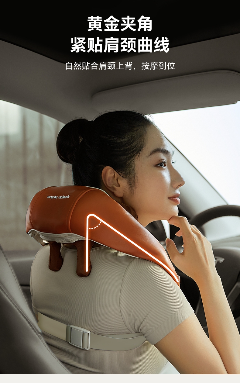大面积覆盖肩颈,快速放松斜方肌;四手拿捏专利手法,真人按摩享受;轻便不压肩,随时随地都能按