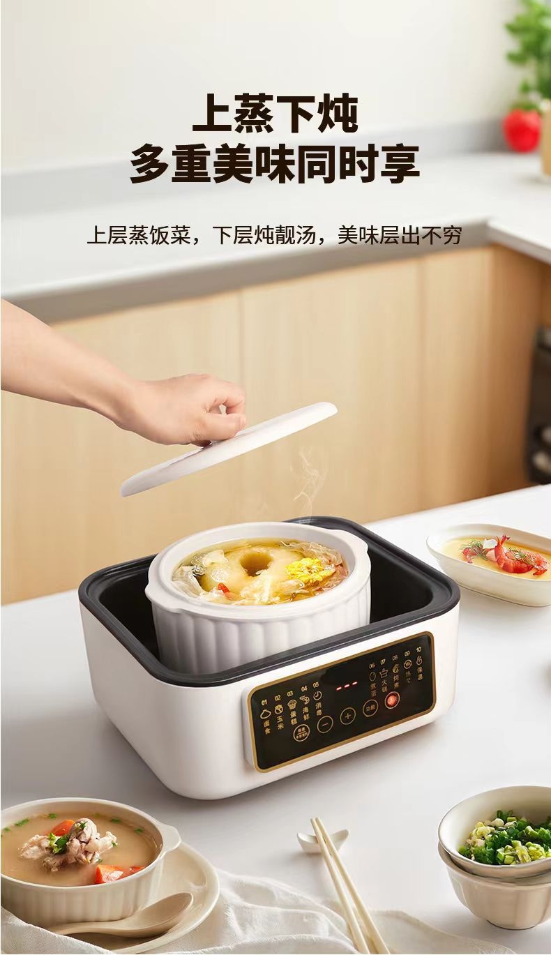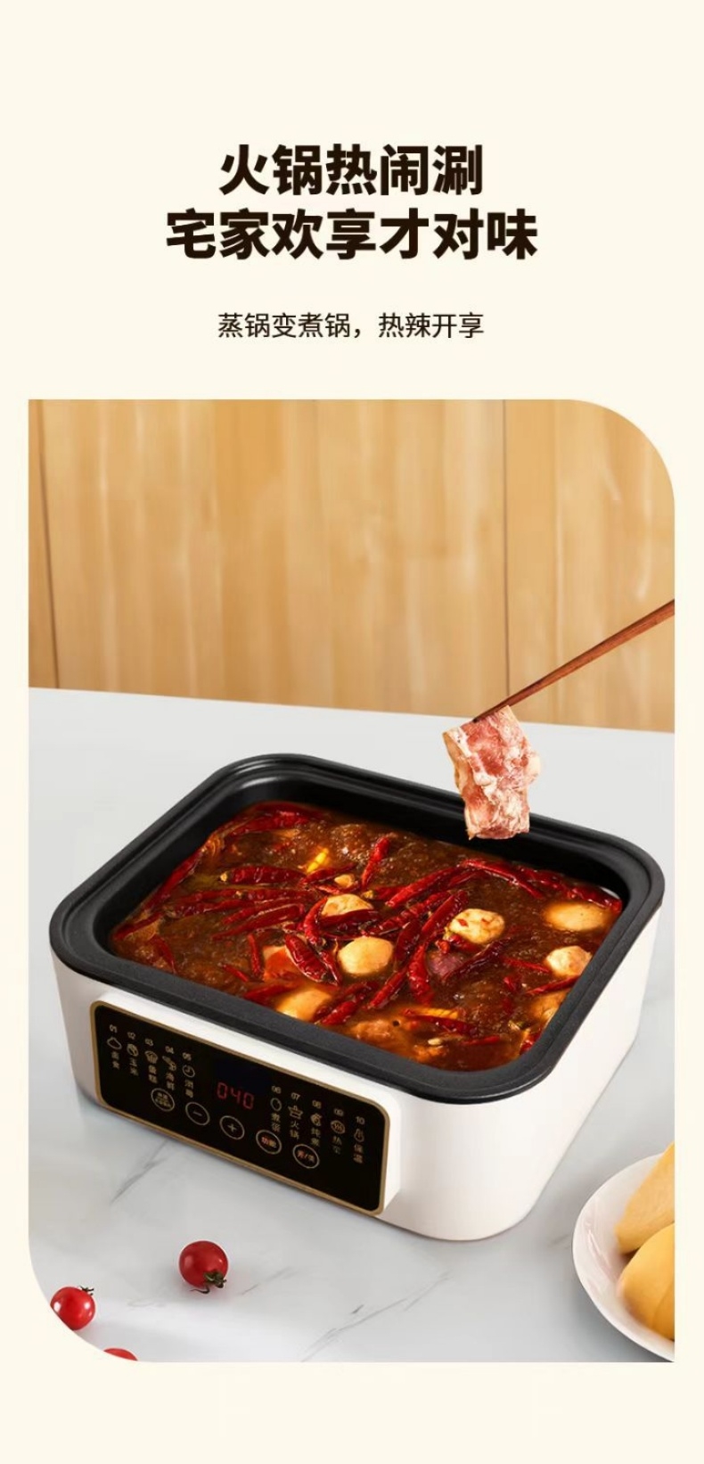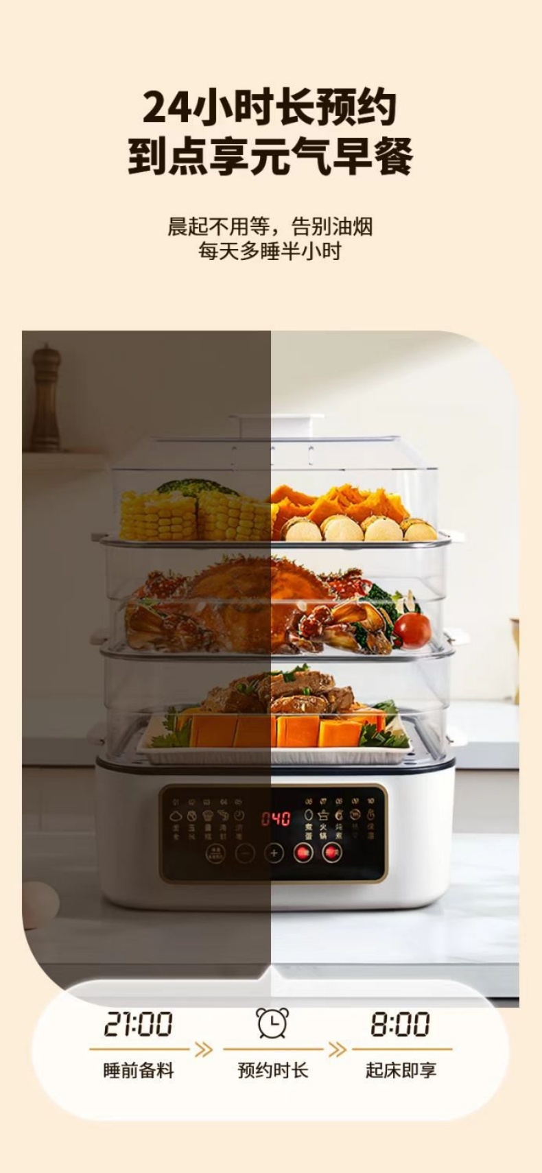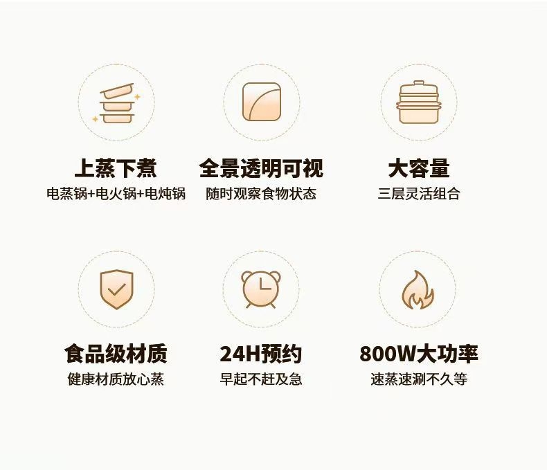三层不锈钢蒸架;上蒸下煮底锅是电火锅;预约