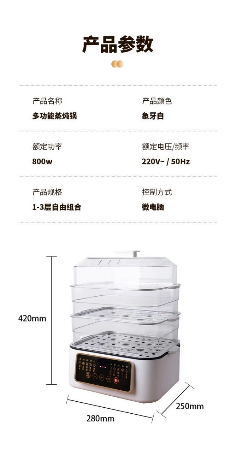 配置清单:3块不锈钢蒸架 底锅 塑料格 盖子