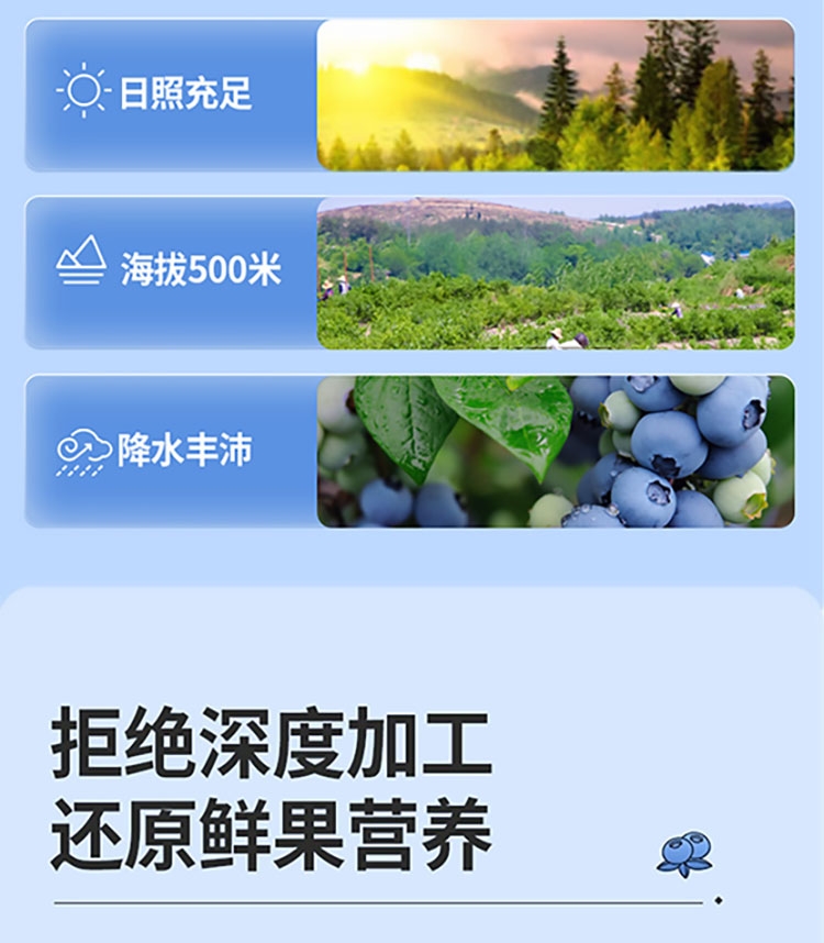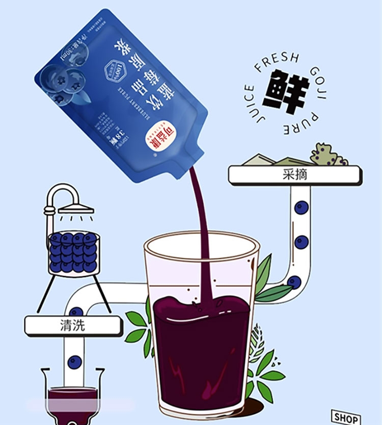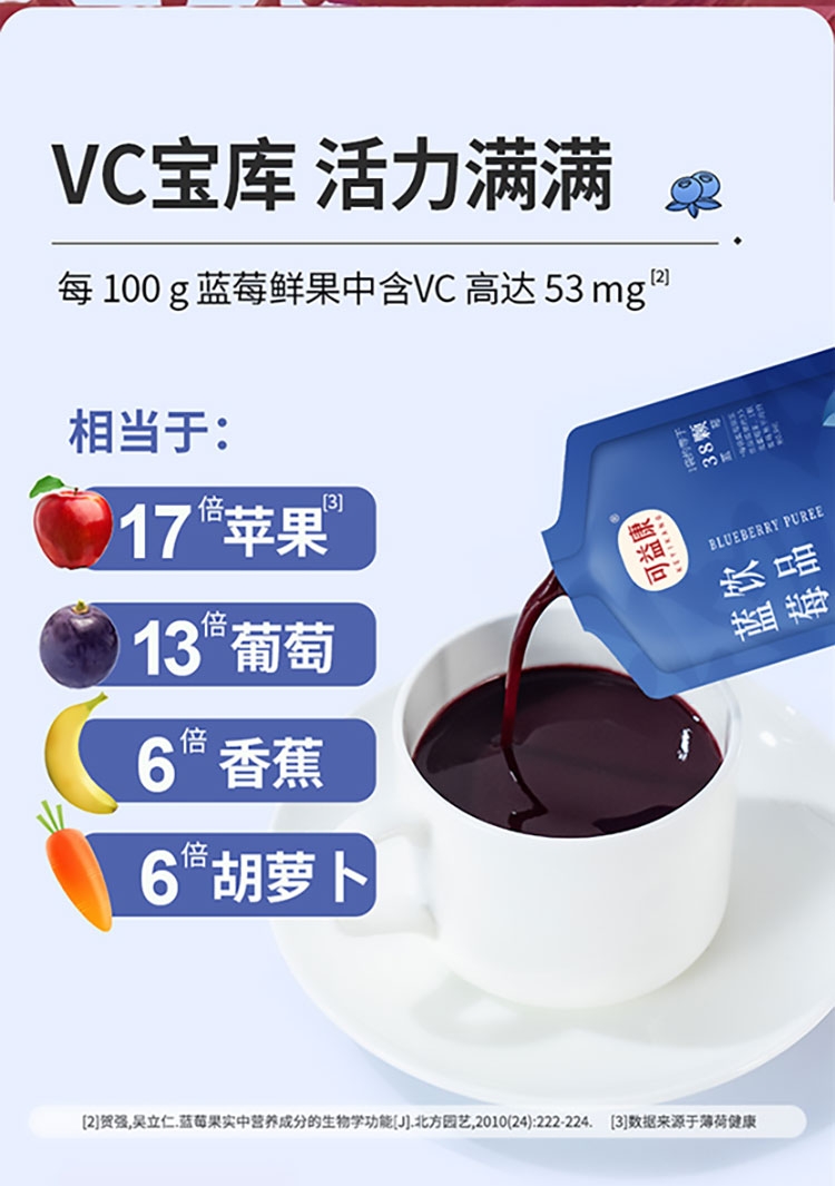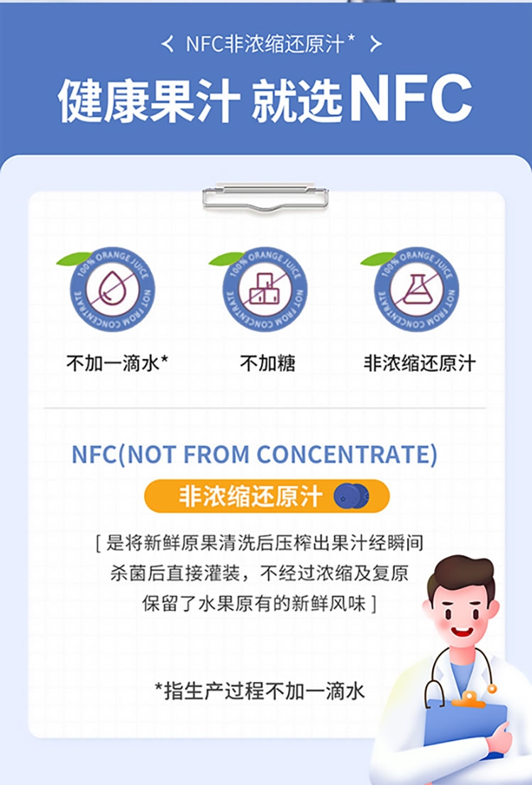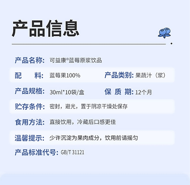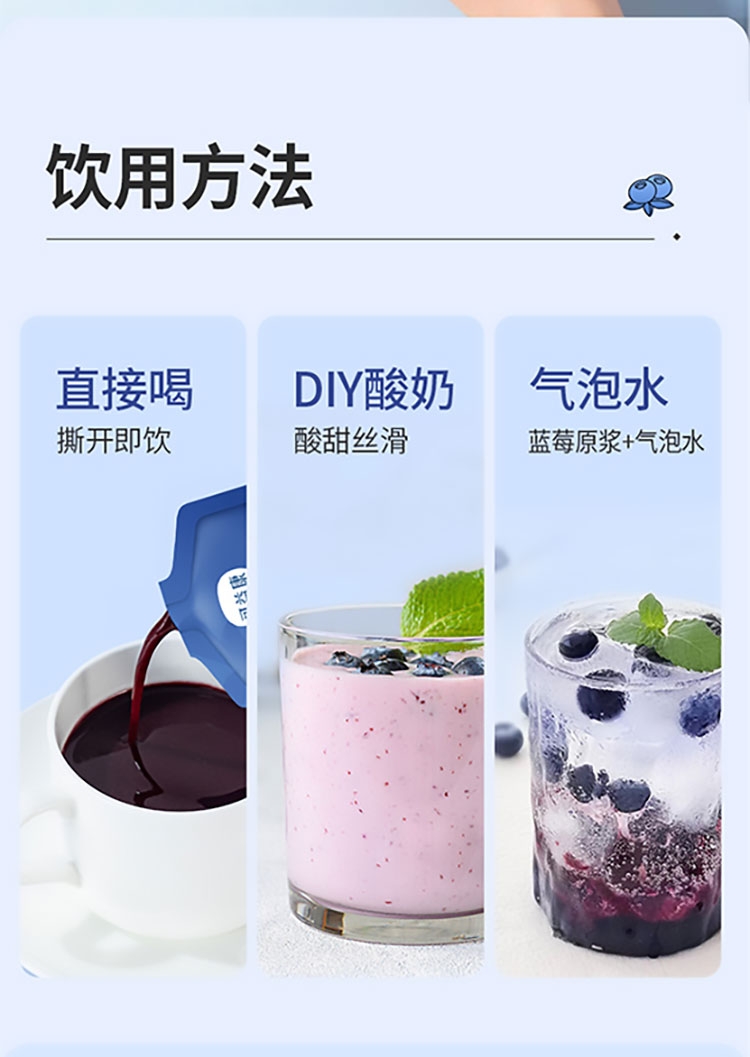 每盒约等于380颗蓝莓;NFC非浓缩还原,不加1滴水;酸甜清爽护双眼,每天一袋气色佳。