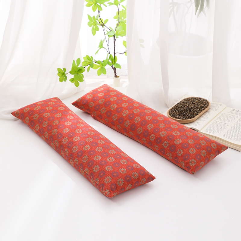 双层纱荞麦腰枕-红色小菊