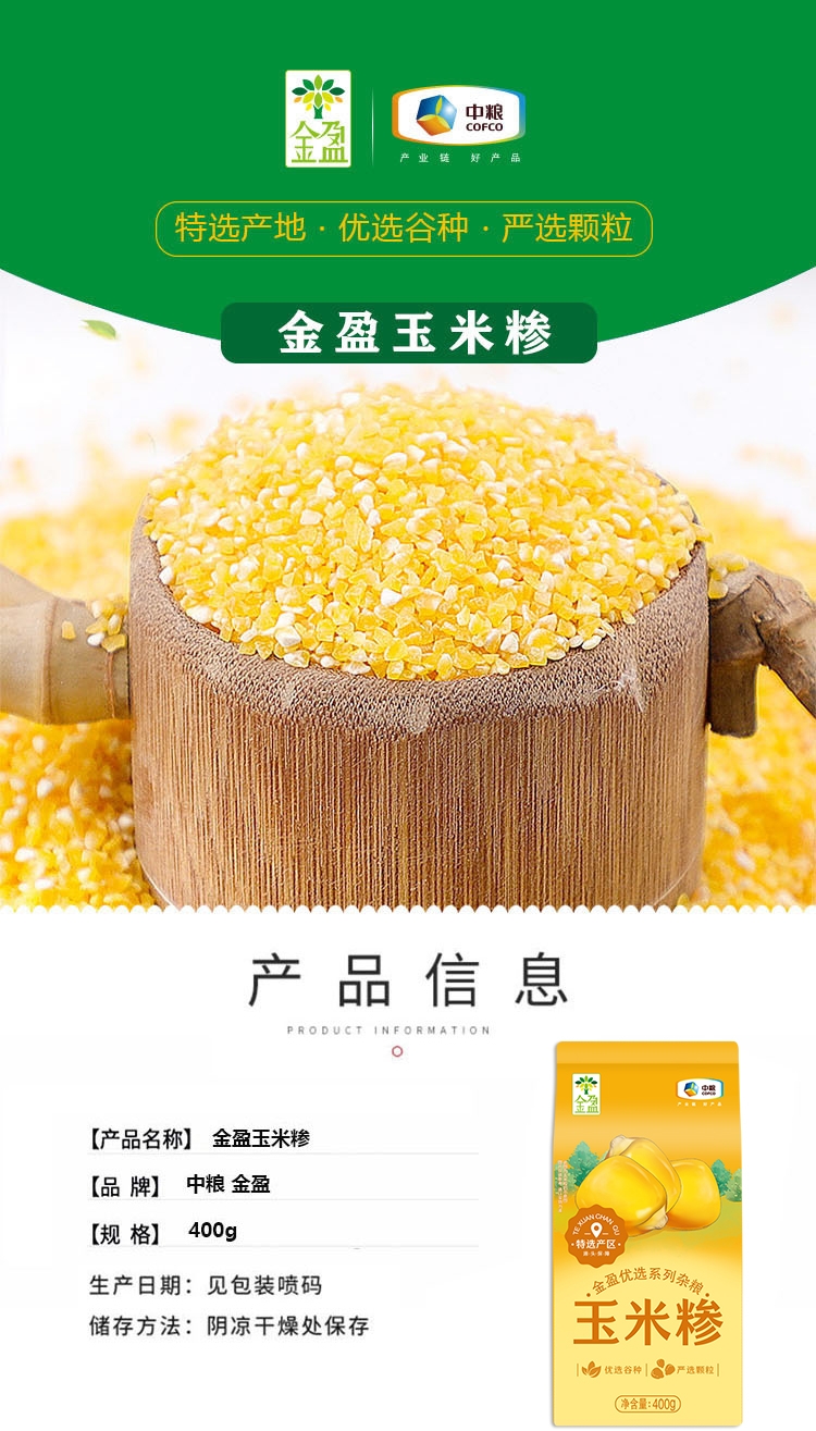 配置清单:中粮金盈玉米糁400g