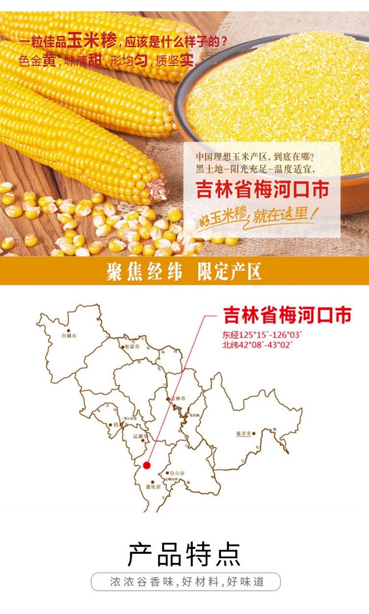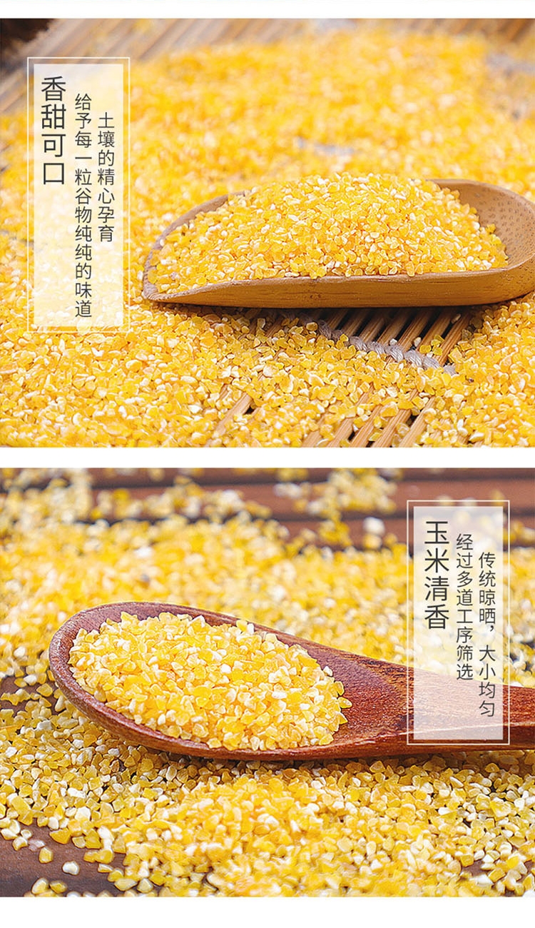 精选优质玉米加工,颗粒均匀熬煮易烂。;保留原始玉米浓香,口感粘稠回味甘甜。;富含膳食纤维营养,日常粗粮健康之选。