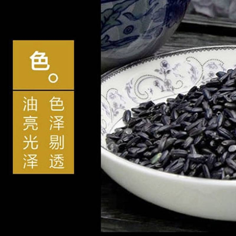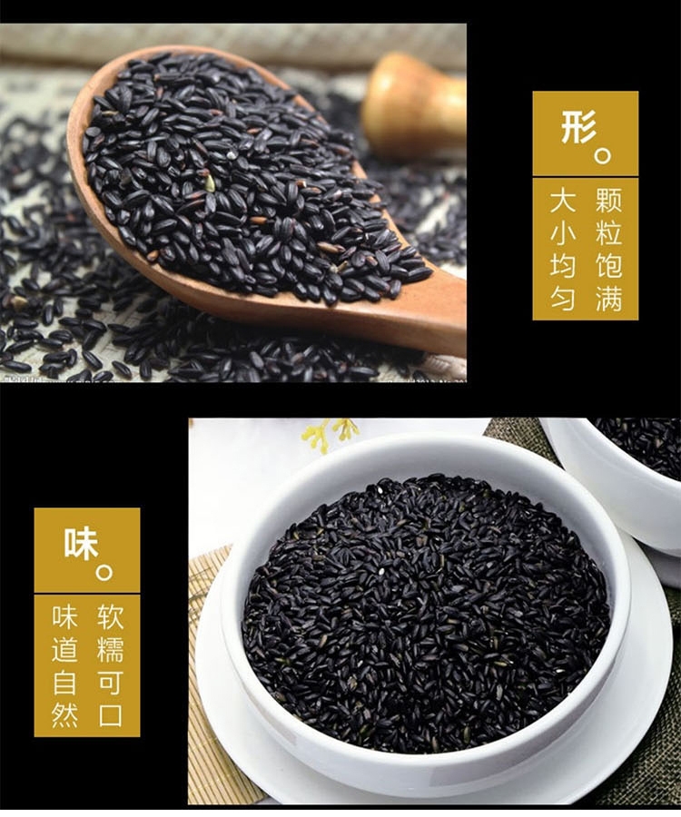 米中珍品色泽纯黑,花青素含量更丰富。;自然清香口感软糯,煮粥煮饭皆宜需浸泡;滋补养生益肾气,搭配白米粗细粮更健康。