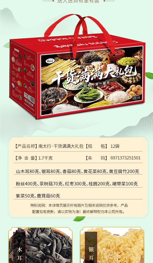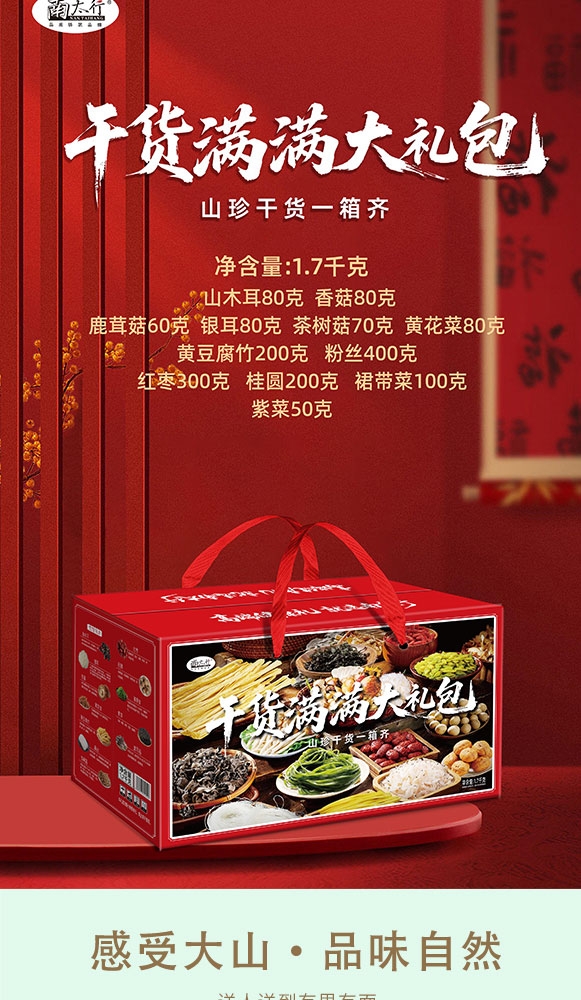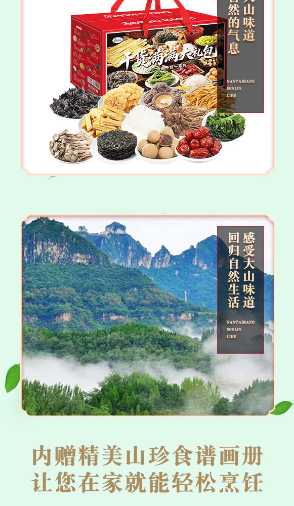南太行干货大礼包,臻选干货打造山珍家宴;满满干货,满满心意,南太行美味一次配齐;高端健康礼,当选南太行。