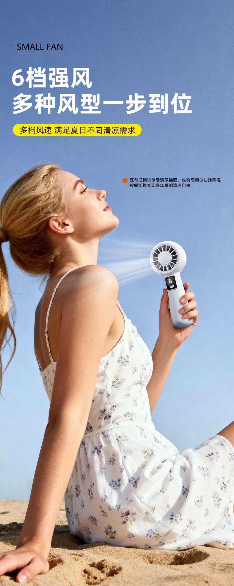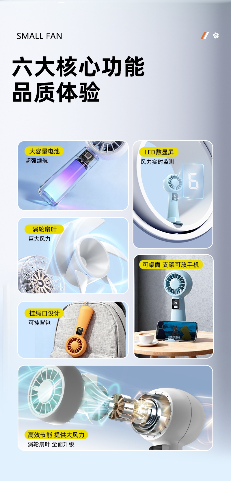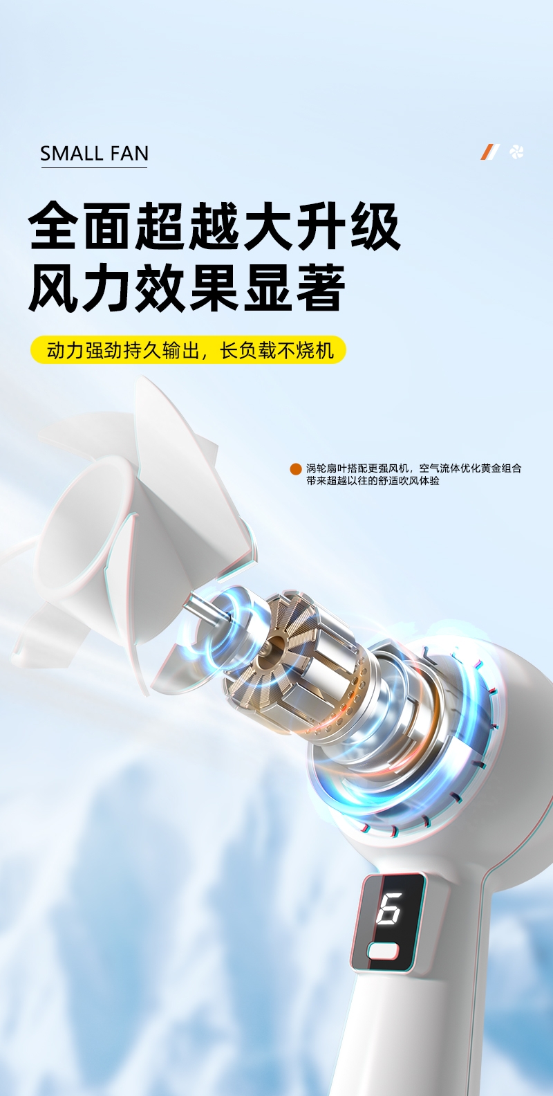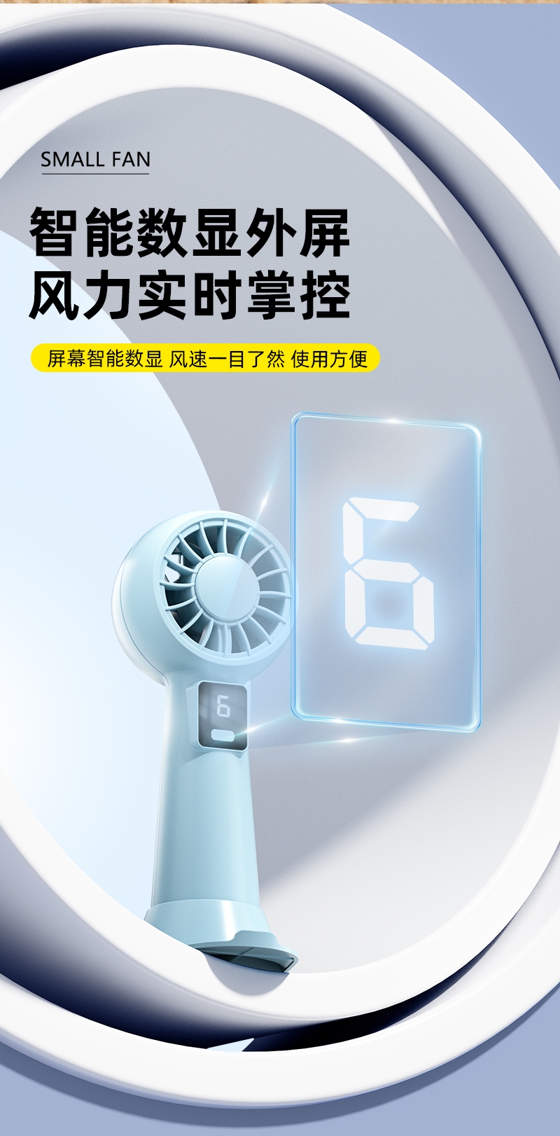 智能数显设计;6档风速;采用高性能锂电池,续航更持久