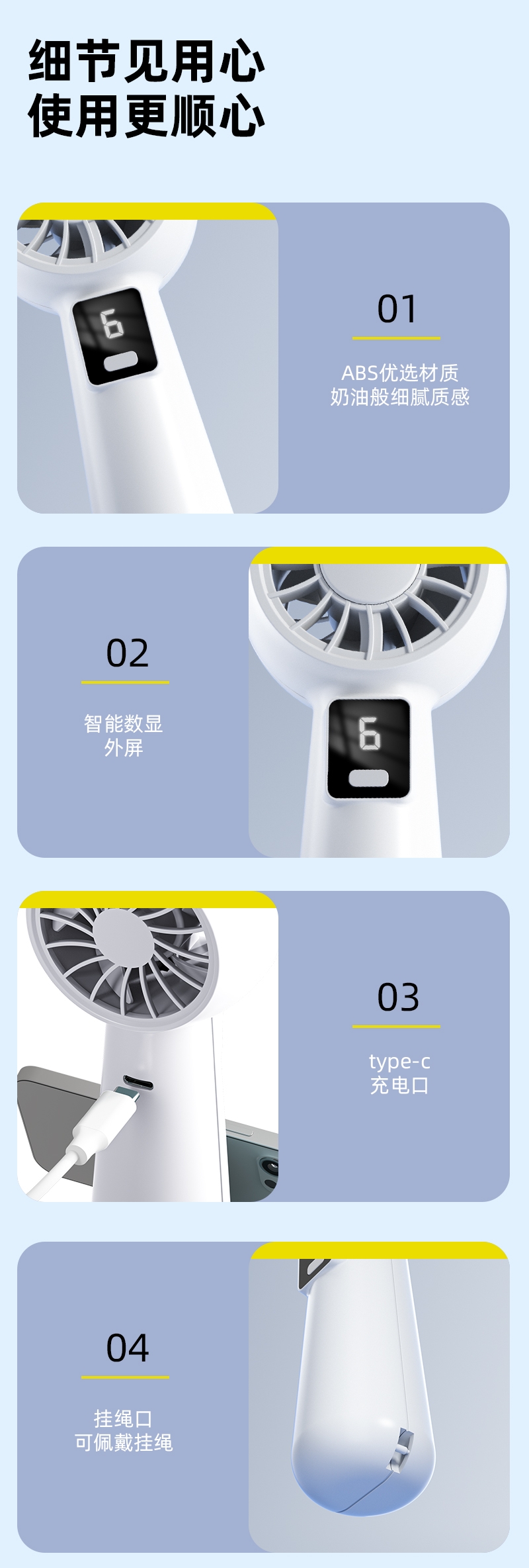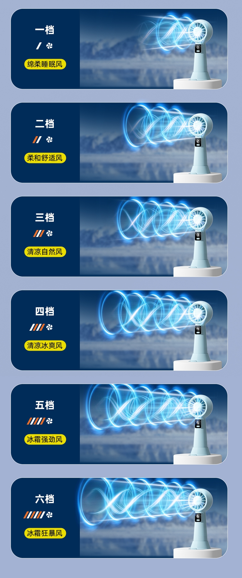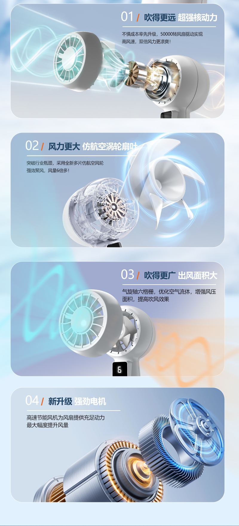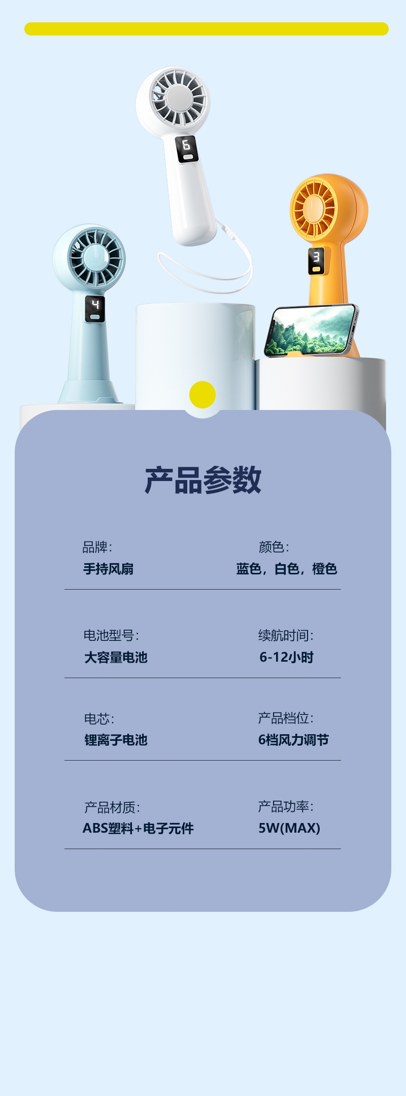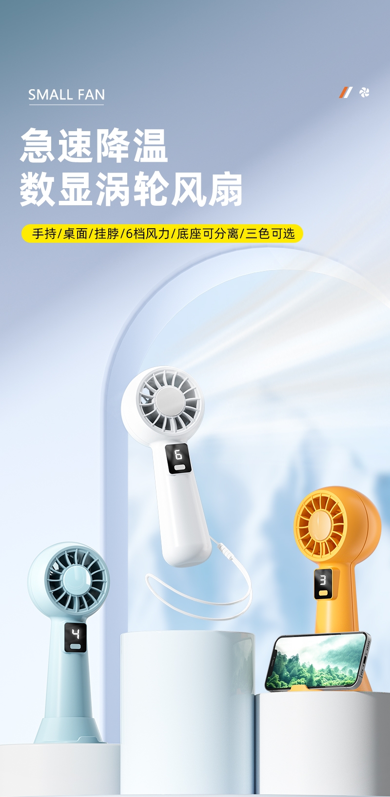 智能数显设计;6档风速;采用高性能锂电池,续航更持久