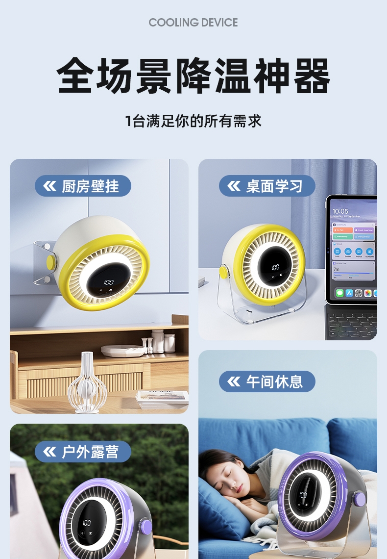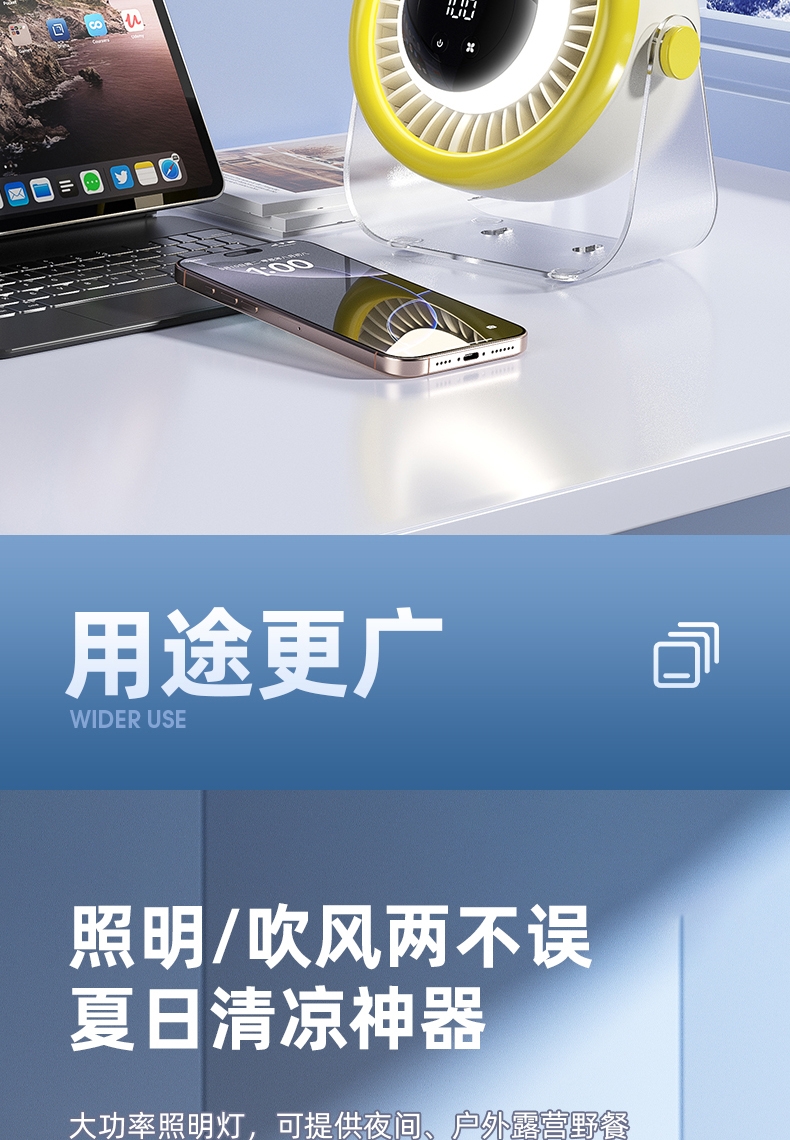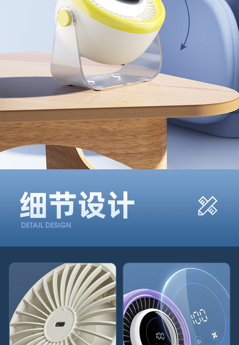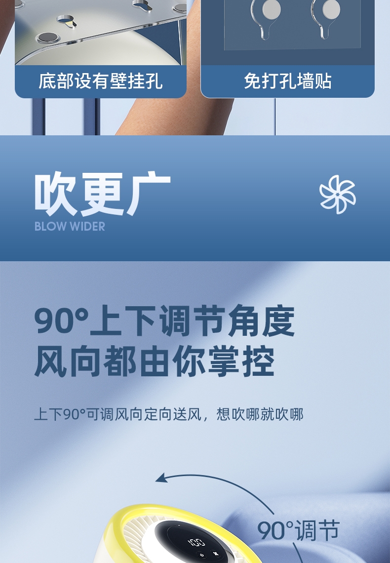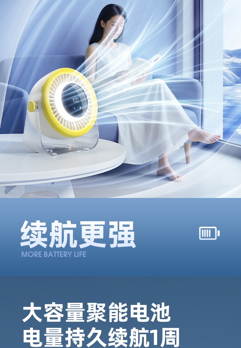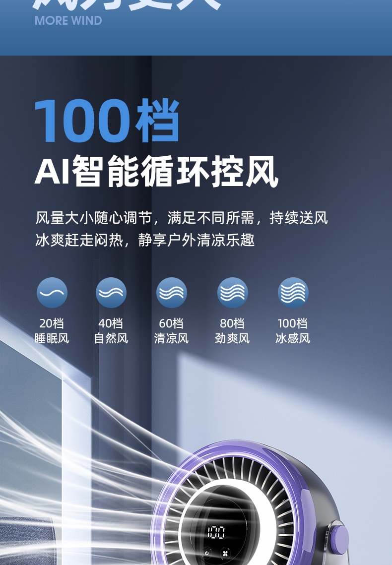 100档调节,风力随心选;智能数显外屏,档位清晰可见;小夜灯功能,伴我们安心入眠