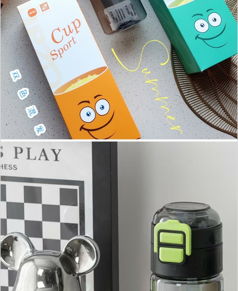 弹跳运动水杯:杯体PC 杯盖PP 600ML