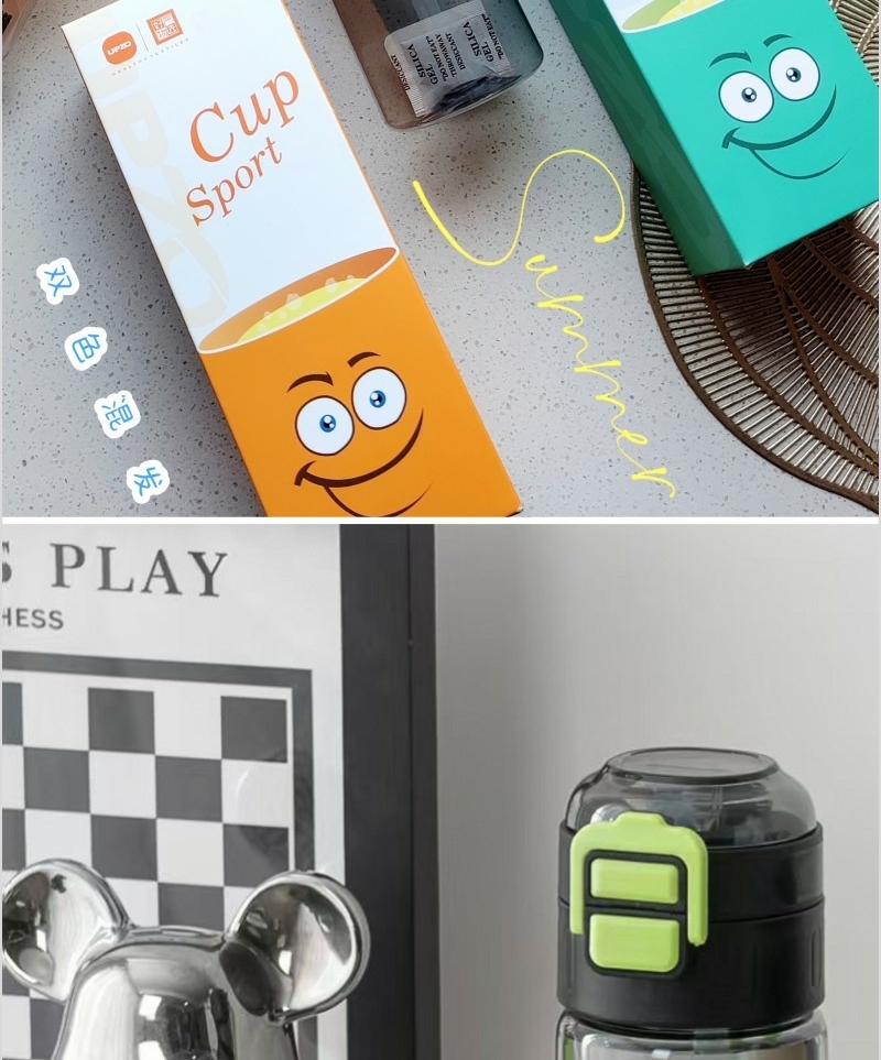 双饮弹跳杯:杯体PC 杯盖PP 600ML