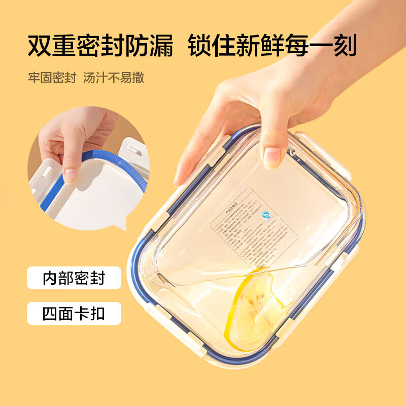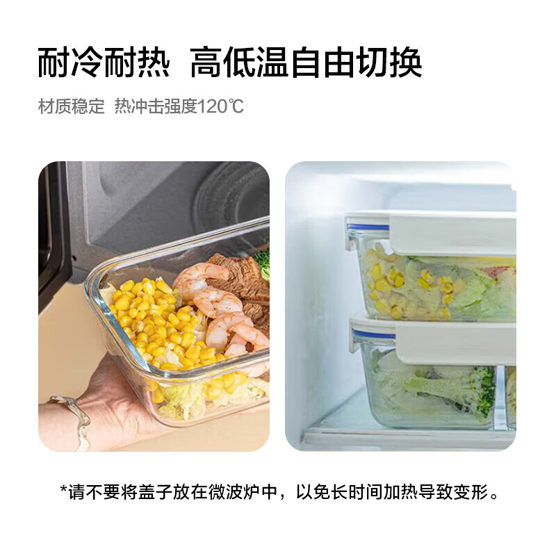安全玻璃,可冷藏/微波,叠放不倒;两种规格,一盒多用;密封不漏