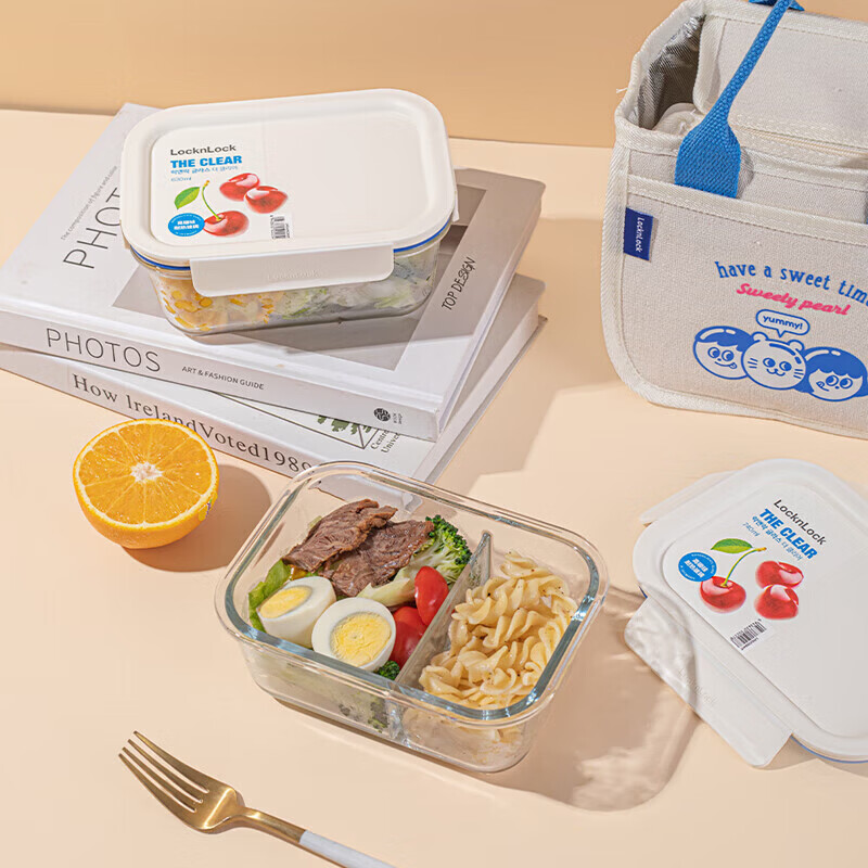 乐扣乐扣 玻璃保鲜盒套装2件套带便当包LNG429S601