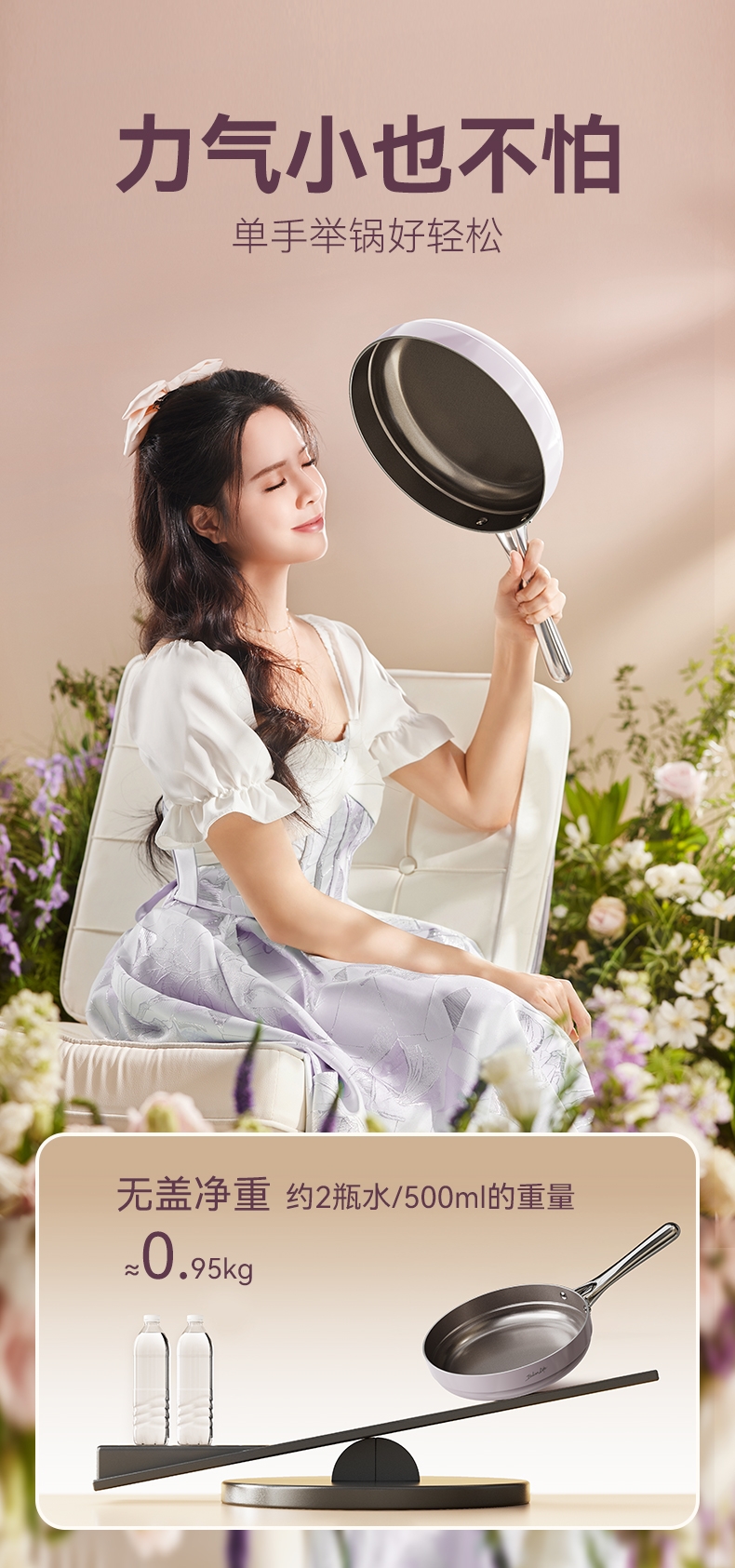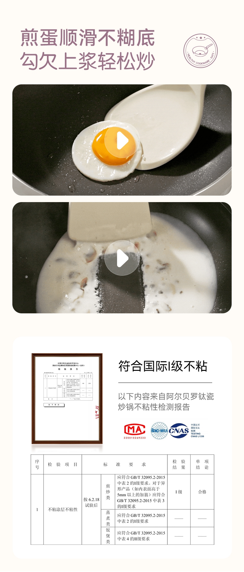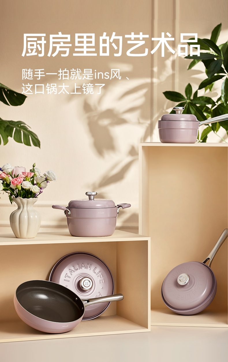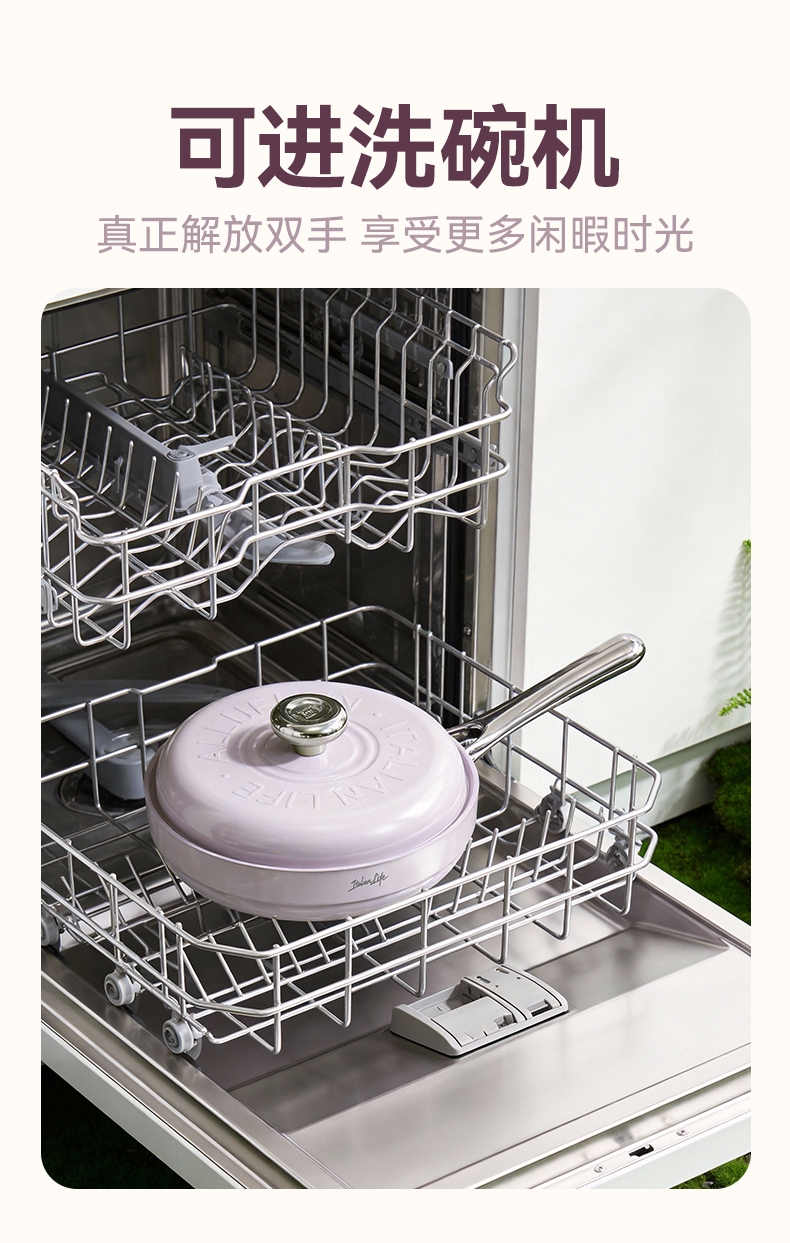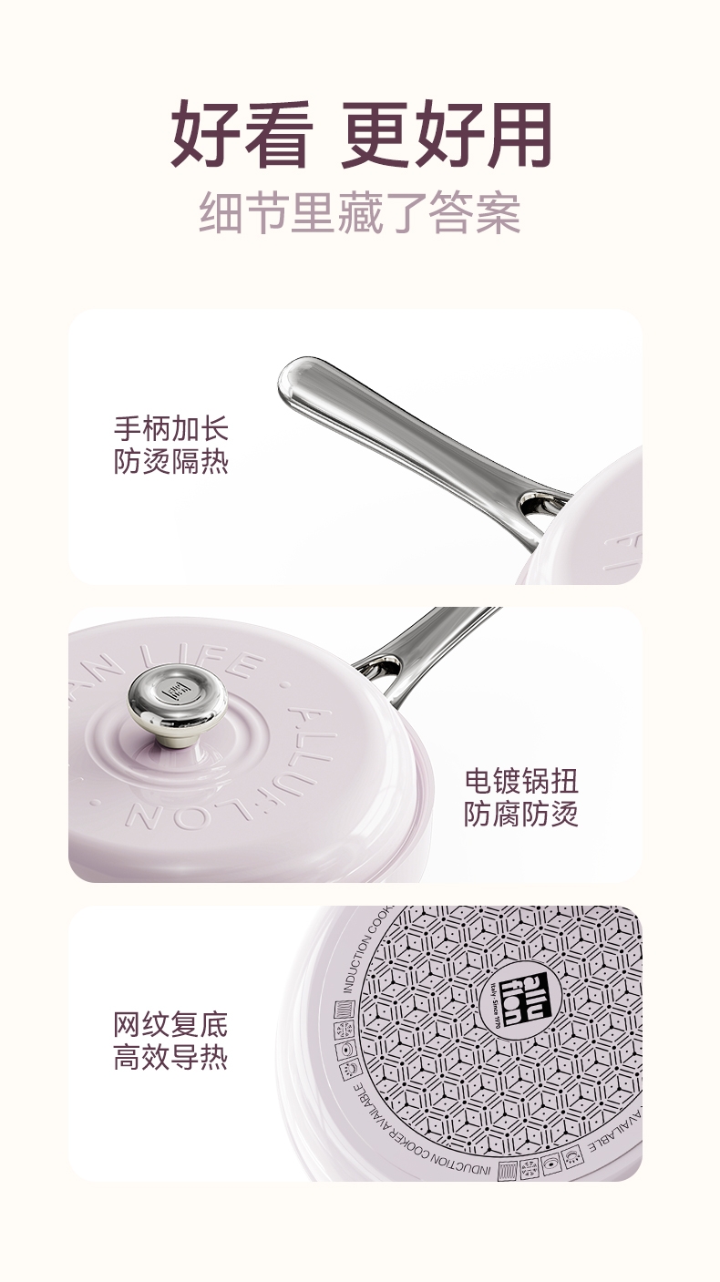 国标1级不粘,钛不粘不糊底;钛瓷革新材质,0氟0析出0涂层;9HV硬度,持久耐磨不粘