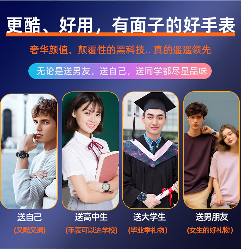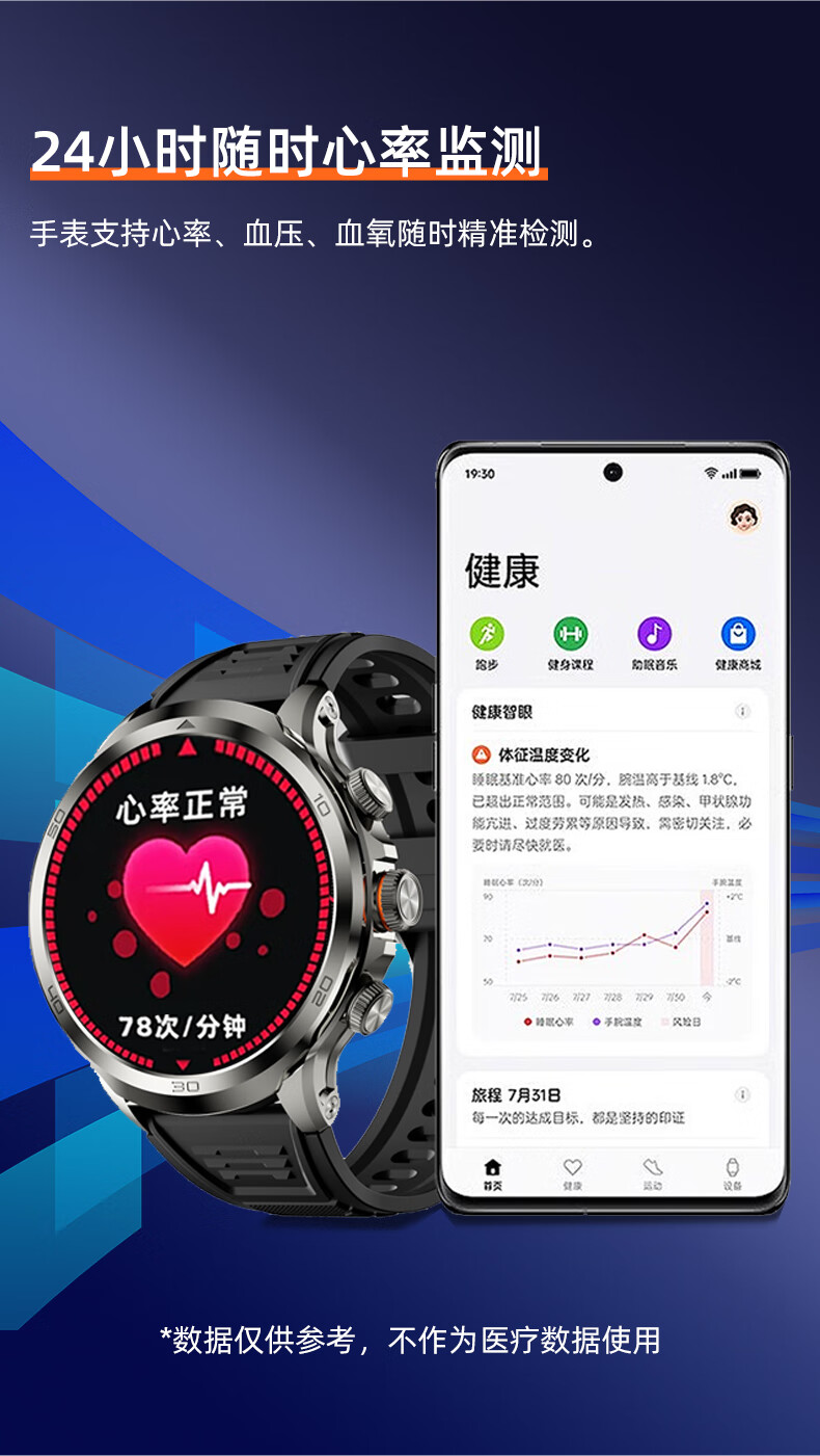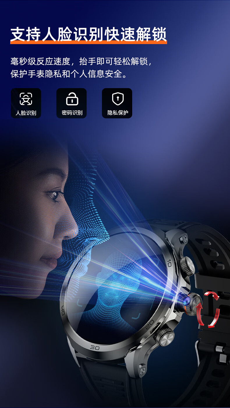 1100mAh大电池,使用2天不断电;IPX7级深度防尘防水;心率、血氧测试,时刻查看自己健康状态