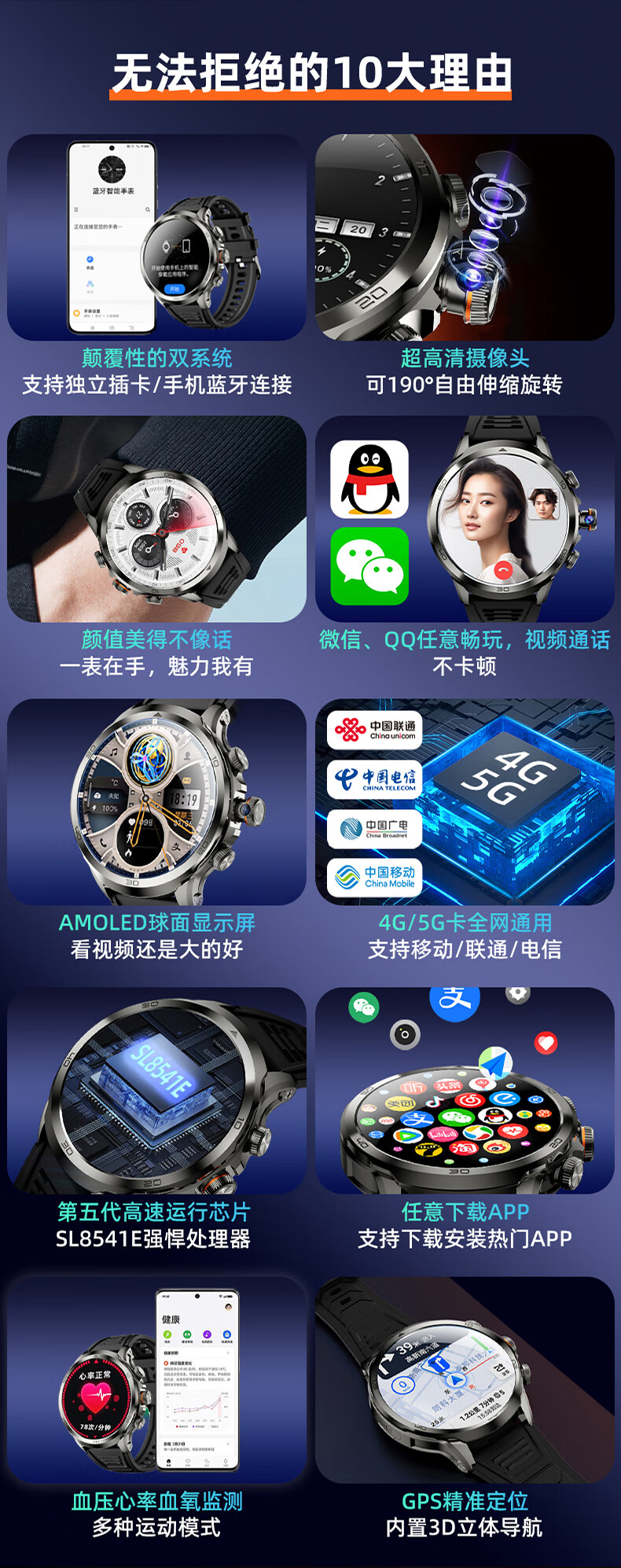 索爱 旋转摄像超大屏电话手表H99