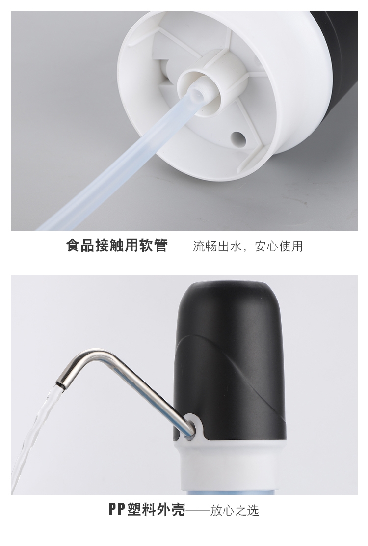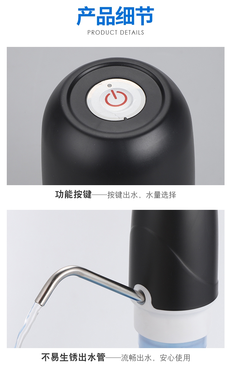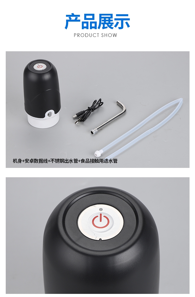 一键启动,手动关停。;充一次电可以抽1-2大桶桶装水;操作简单,使用方便