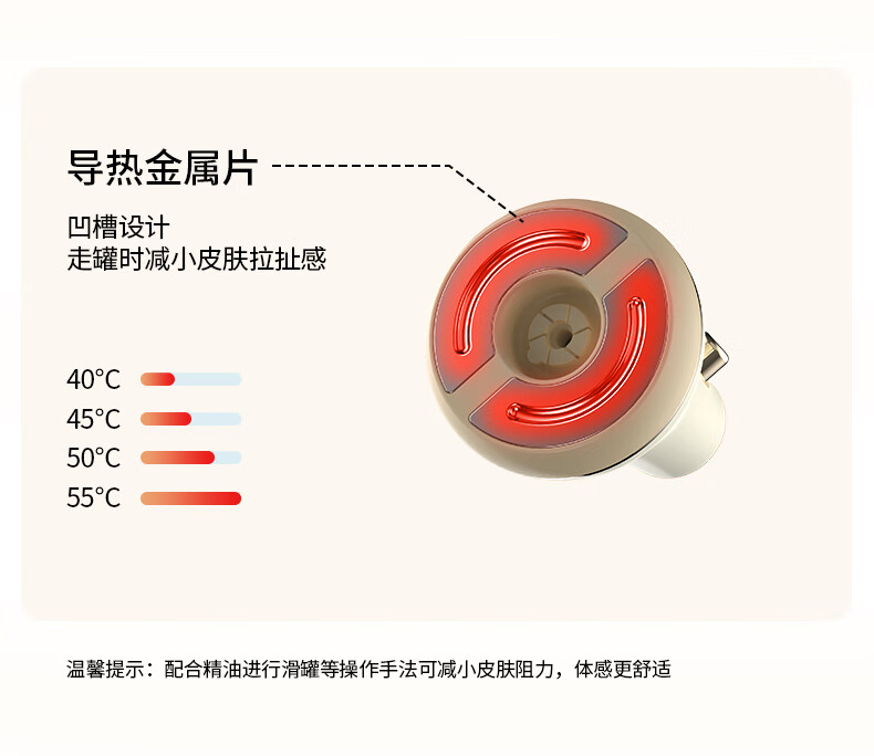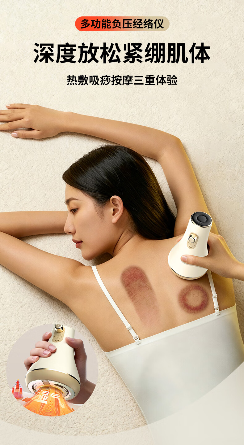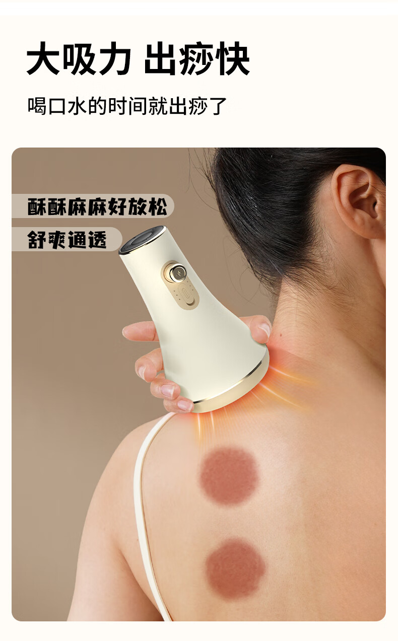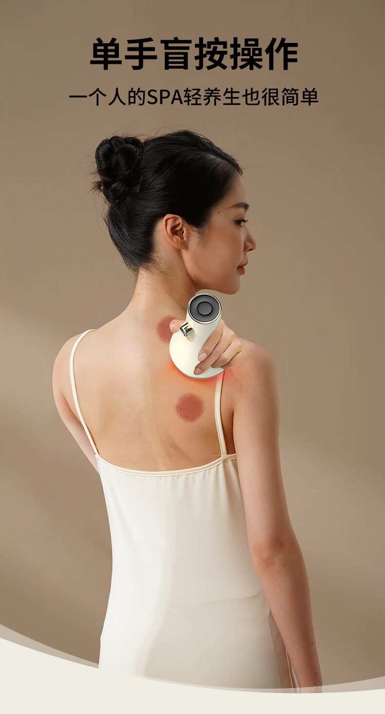 采用电动泵,吸力可以调节,从轻柔到强效;多档位压力调节: 内置多个吸力档位,满足不同部位;定时功能: 可设定拔罐时间;多种罐体选择: 配套提供4种尺寸塑料罐体;模式选择: 实现“拔罐+按摩+热敷”的多重功效