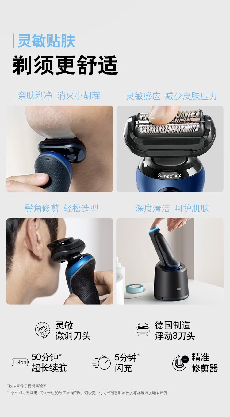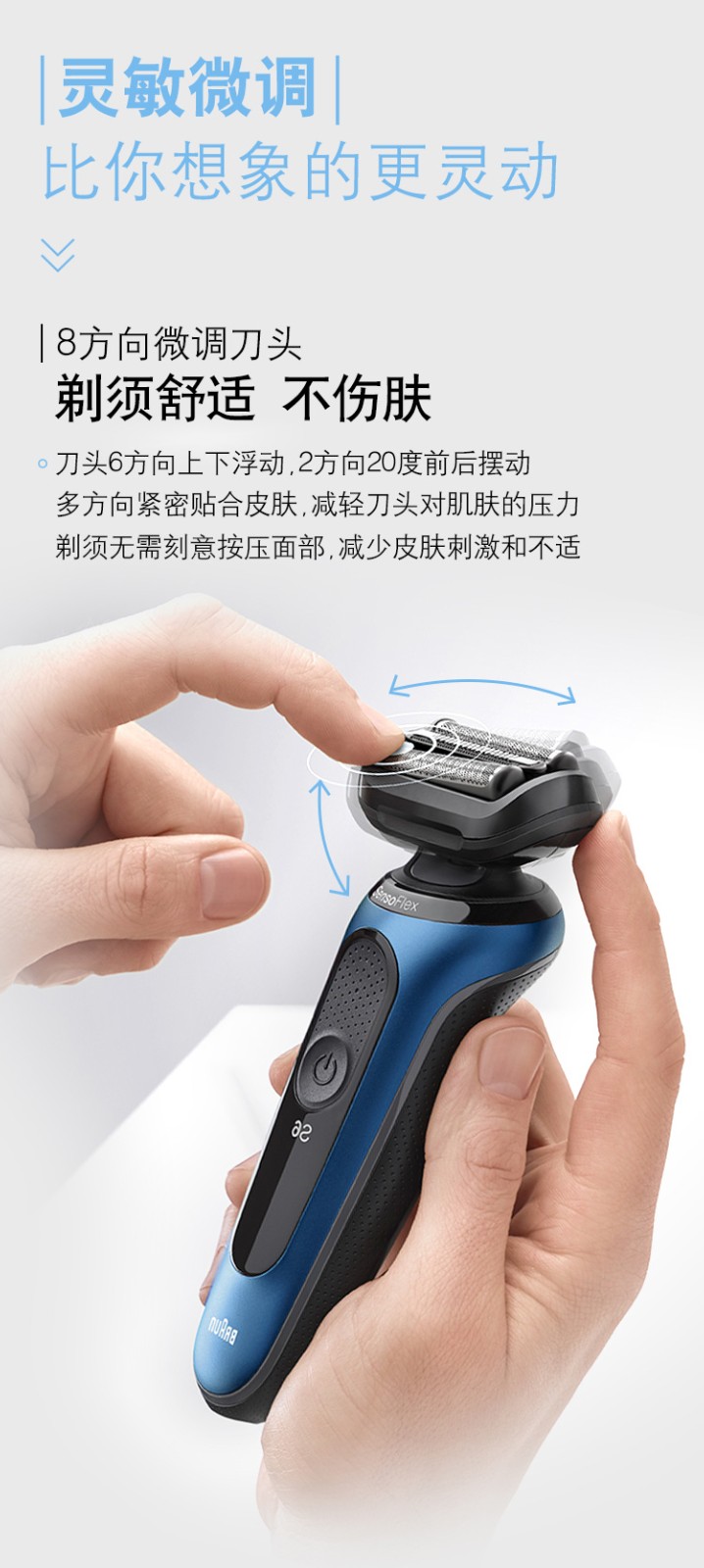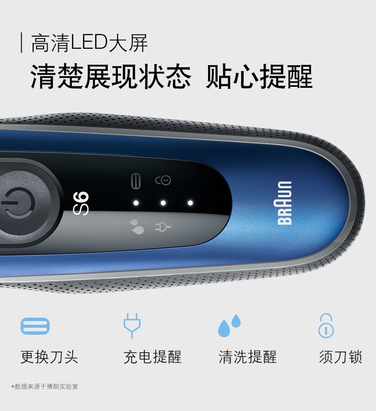 刀头前后20°摆动,精准浮动;时尚外观,舒适剃须,质感出色又皮实耐用;高清LED大屏